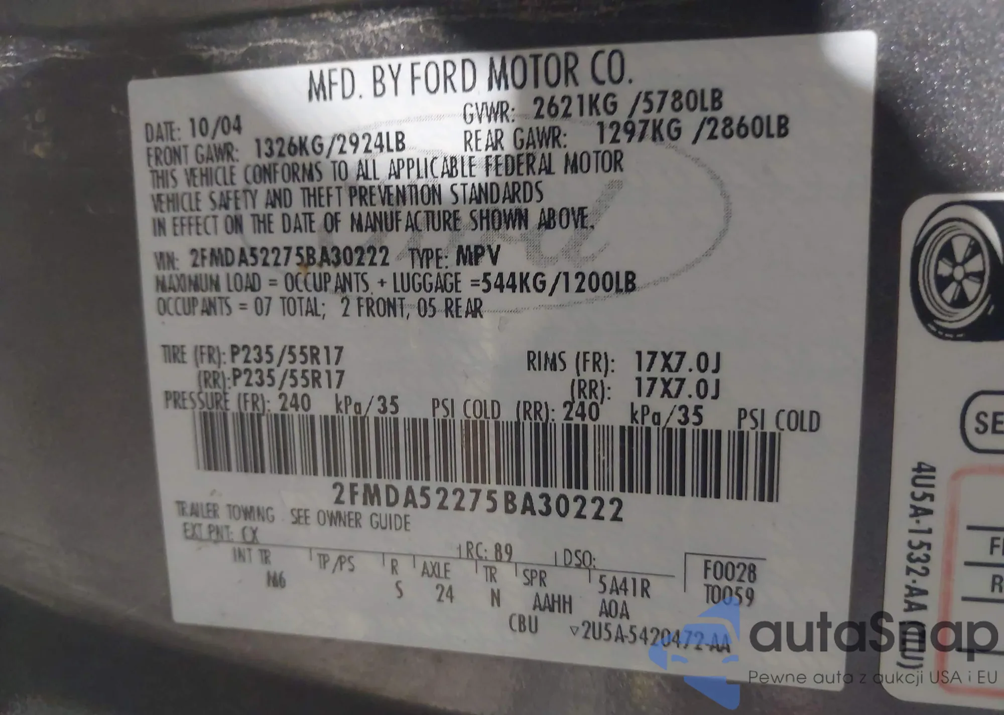 • VIN: 2FMDA52275BA30222