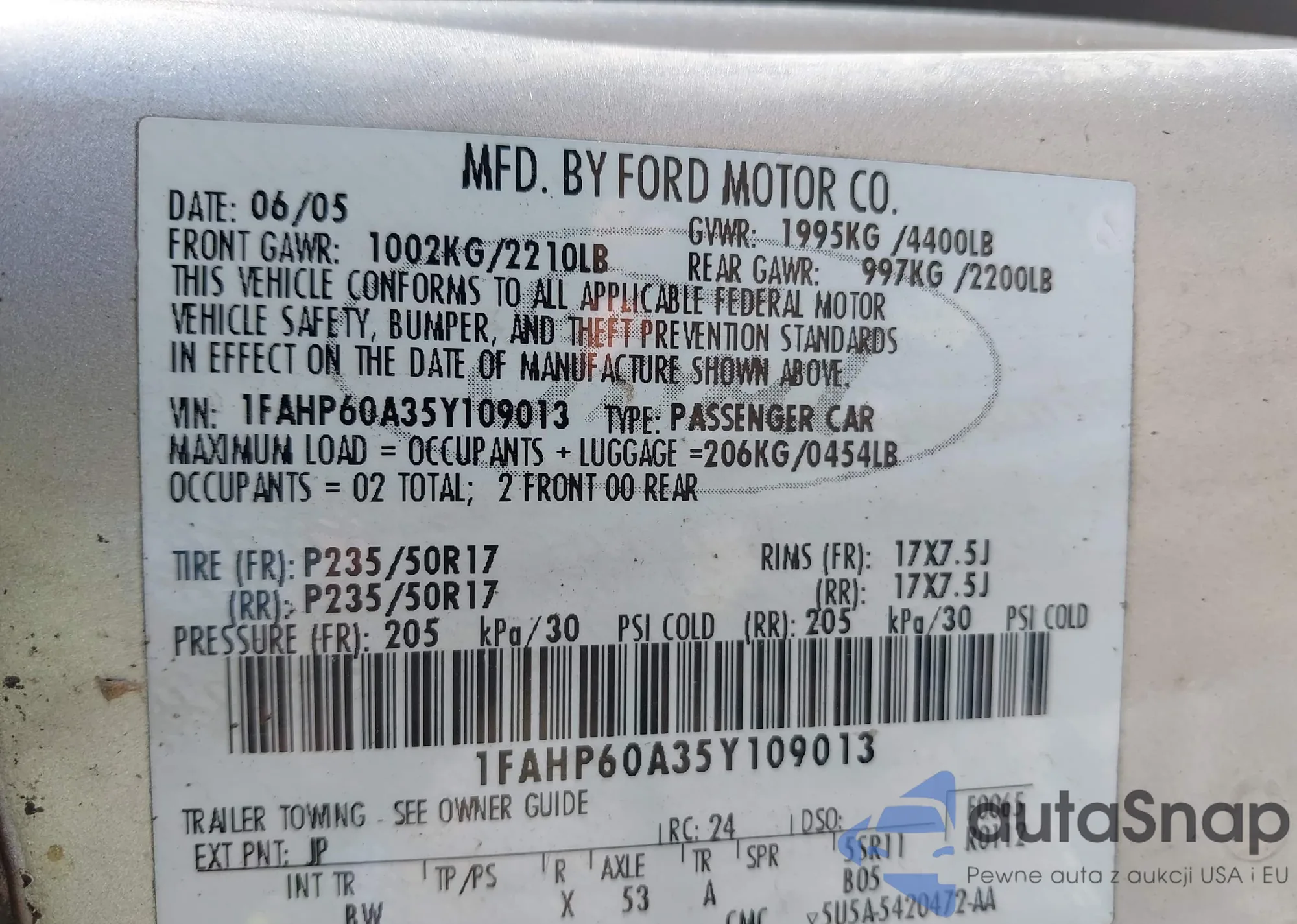 VIN: 1FAHP60A35Y109013