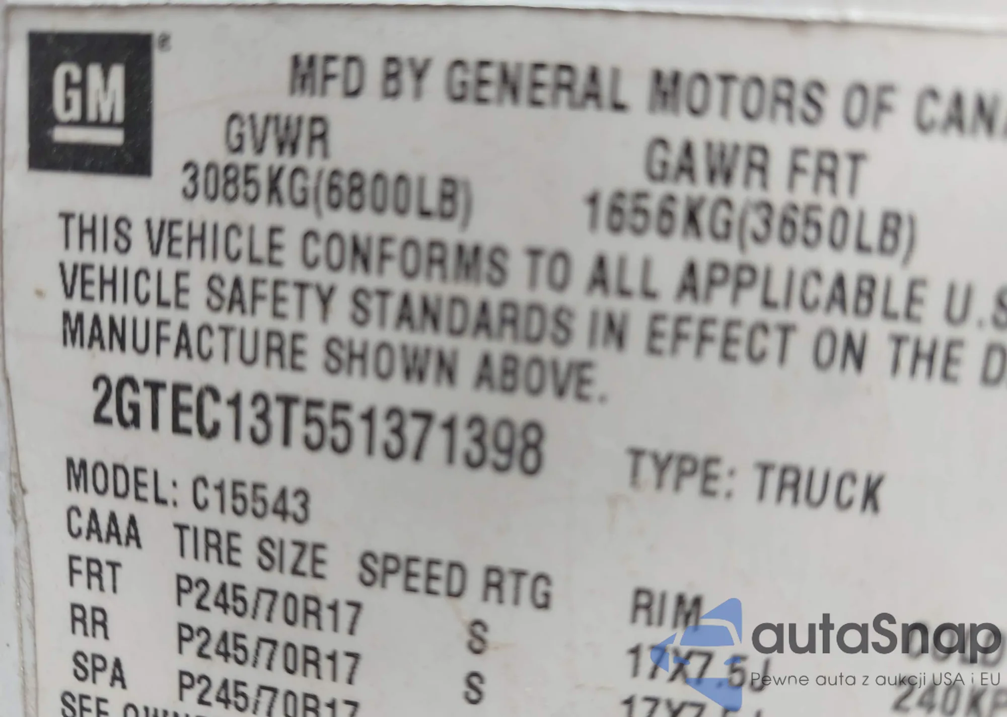 VIN: 2GTEC13T551371398