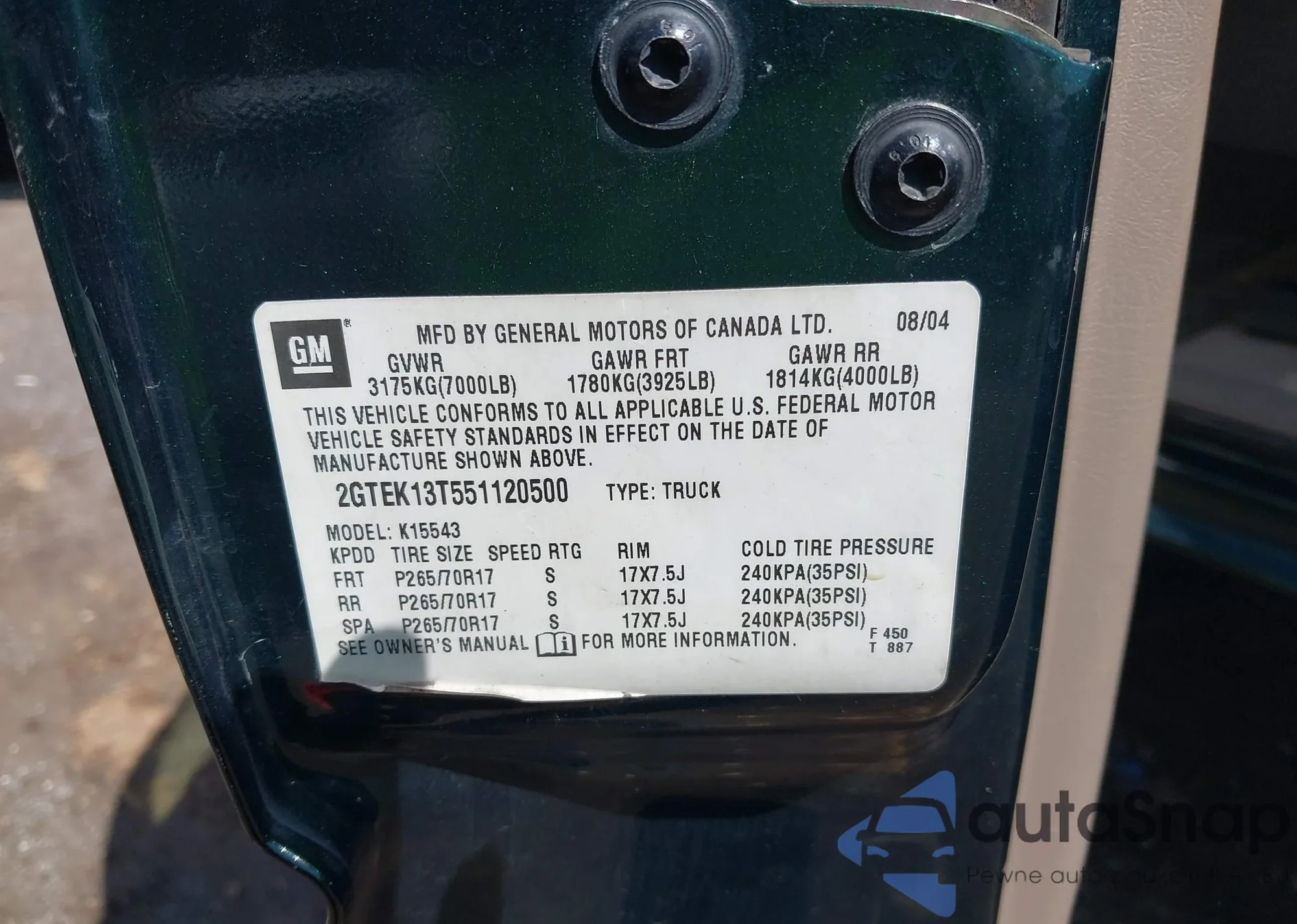 VIN: 2GTEK13T551120500