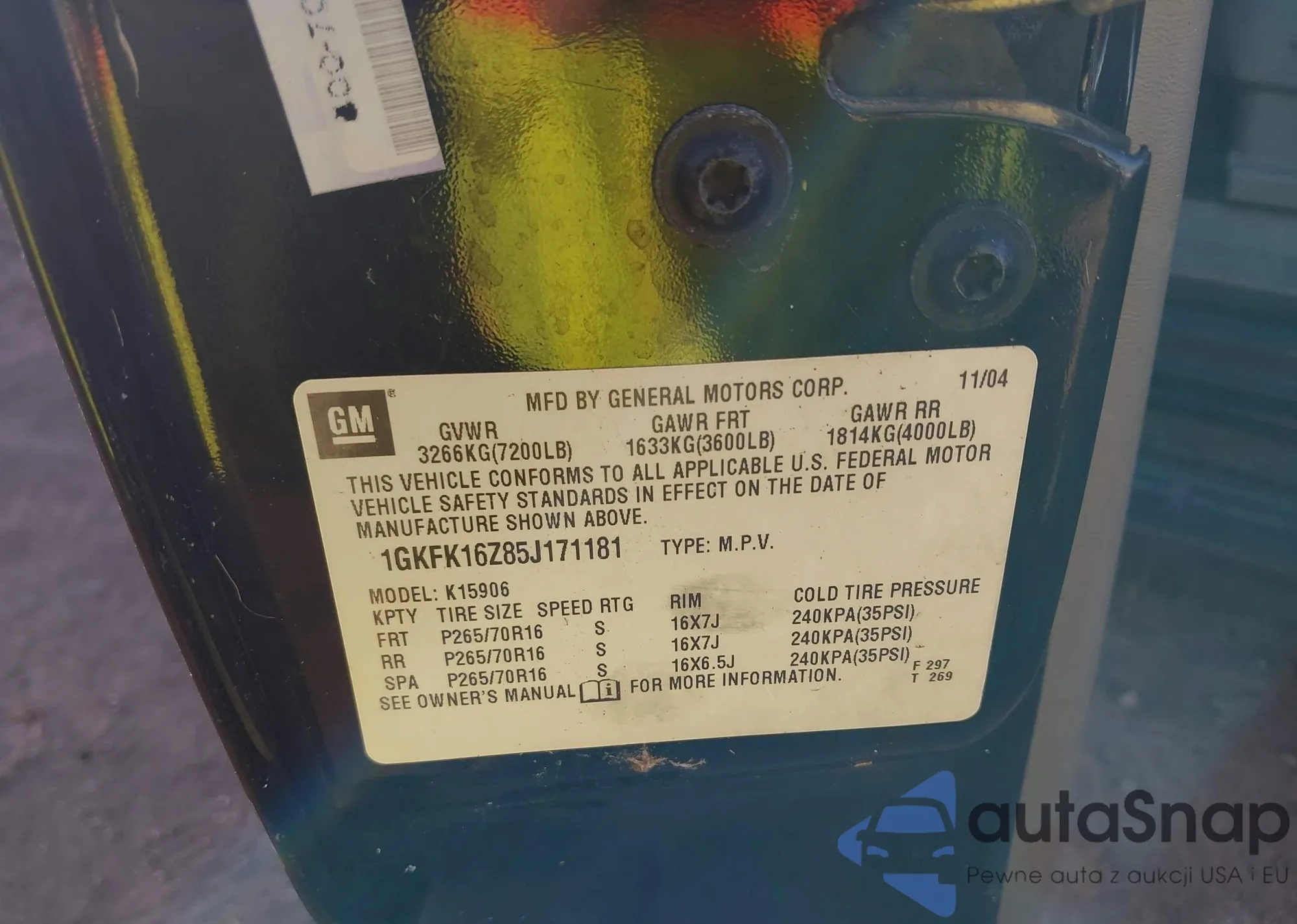VIN: 1GKFK16Z85J171181