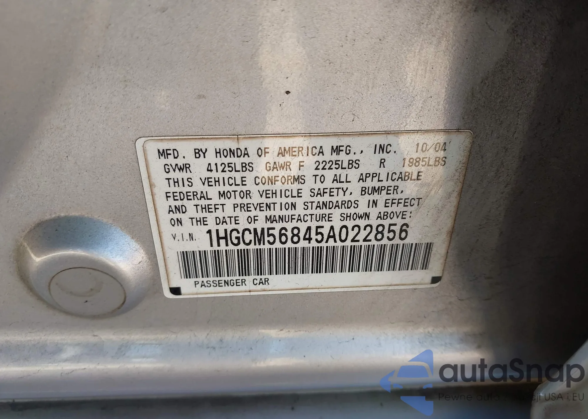 VIN: 1HGCM56845A022856