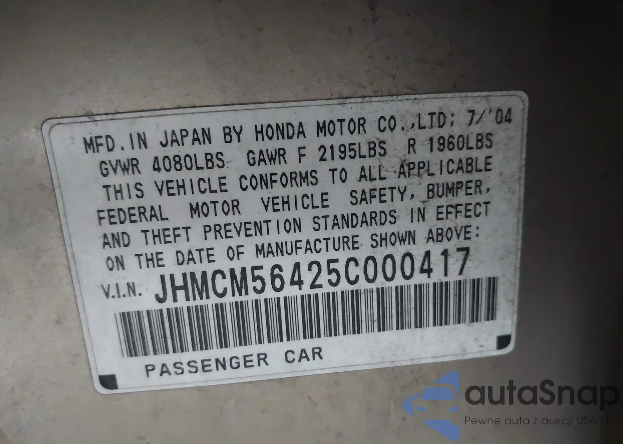 VIN: JHMCM56425C000417