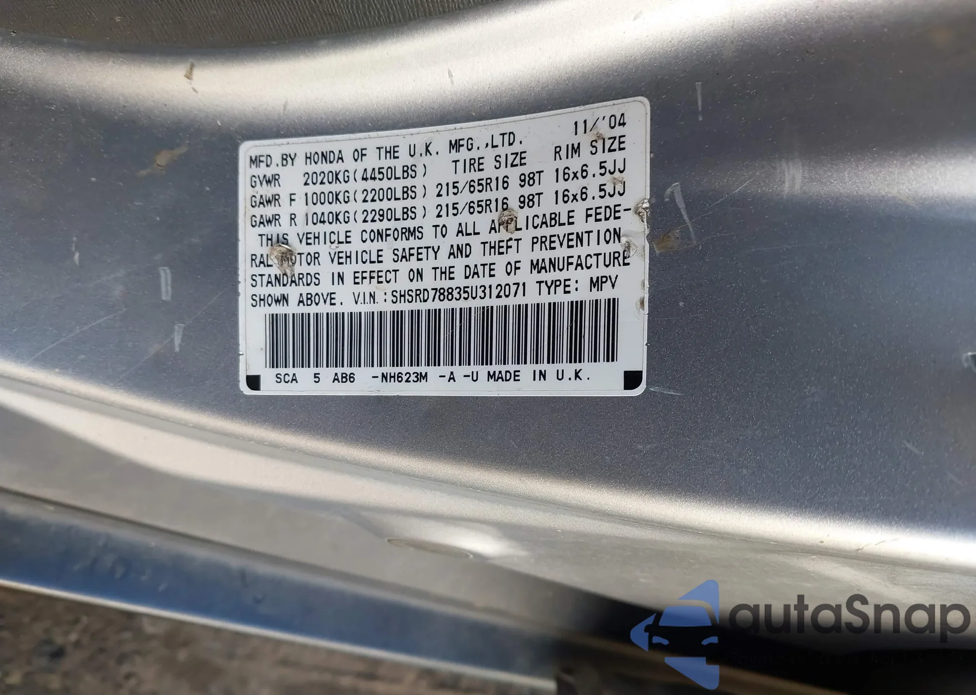 Автомобиль Honda CR-V 2005 (VIN SHSRD78835U312071) имеет документы, препятствующие регистрации. Могут возникнуть сложности при экспорте и регистрации. Обратитесь к экспертам AutaSnap для поиска альтернатив.