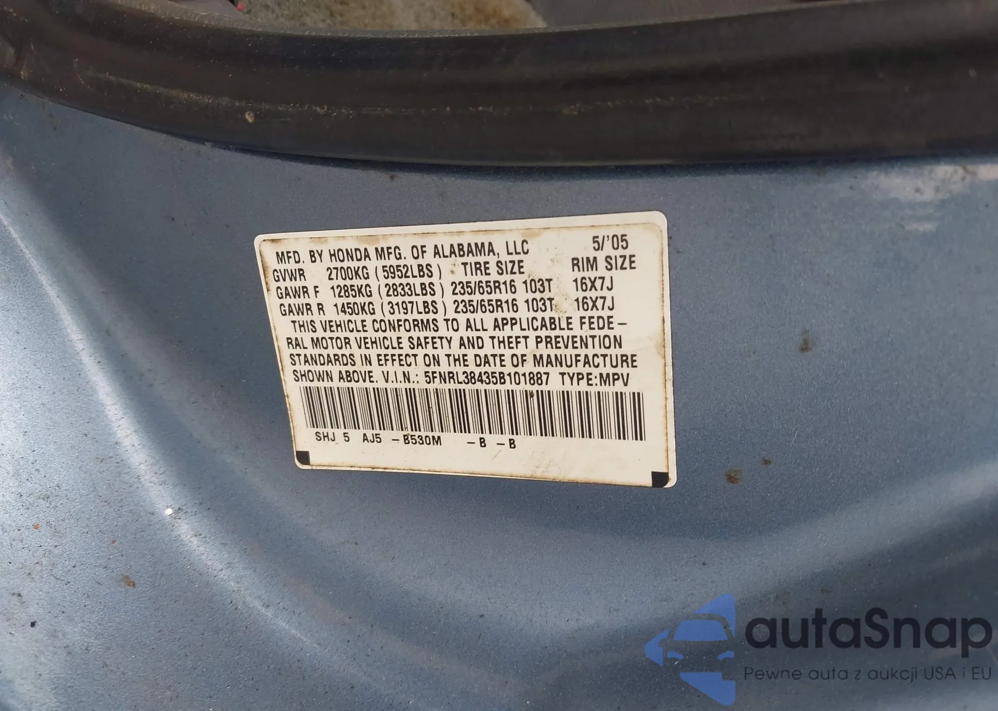 VIN: 5FNRL38435B101887