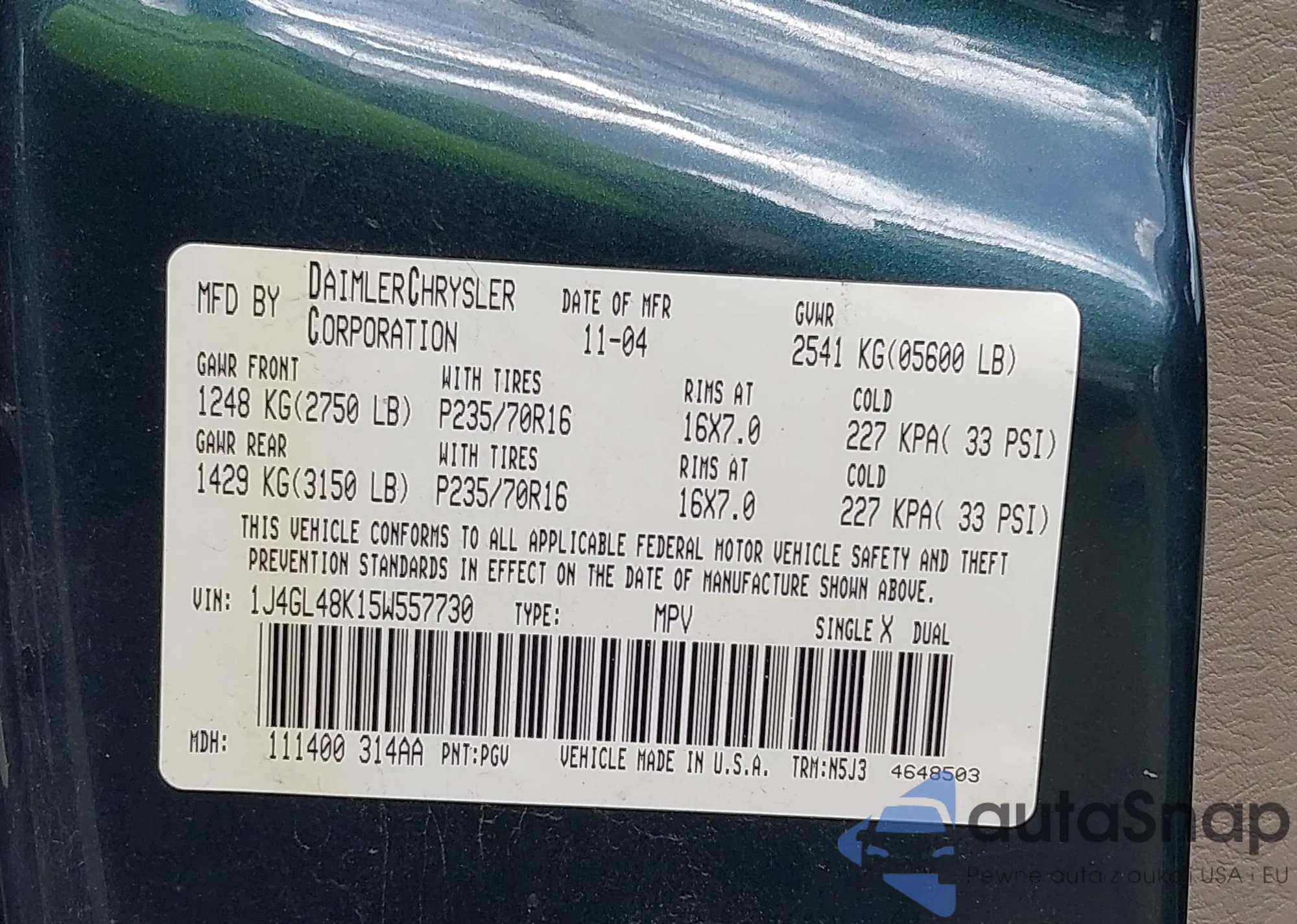 VIN: 1J4GL48K15W557730