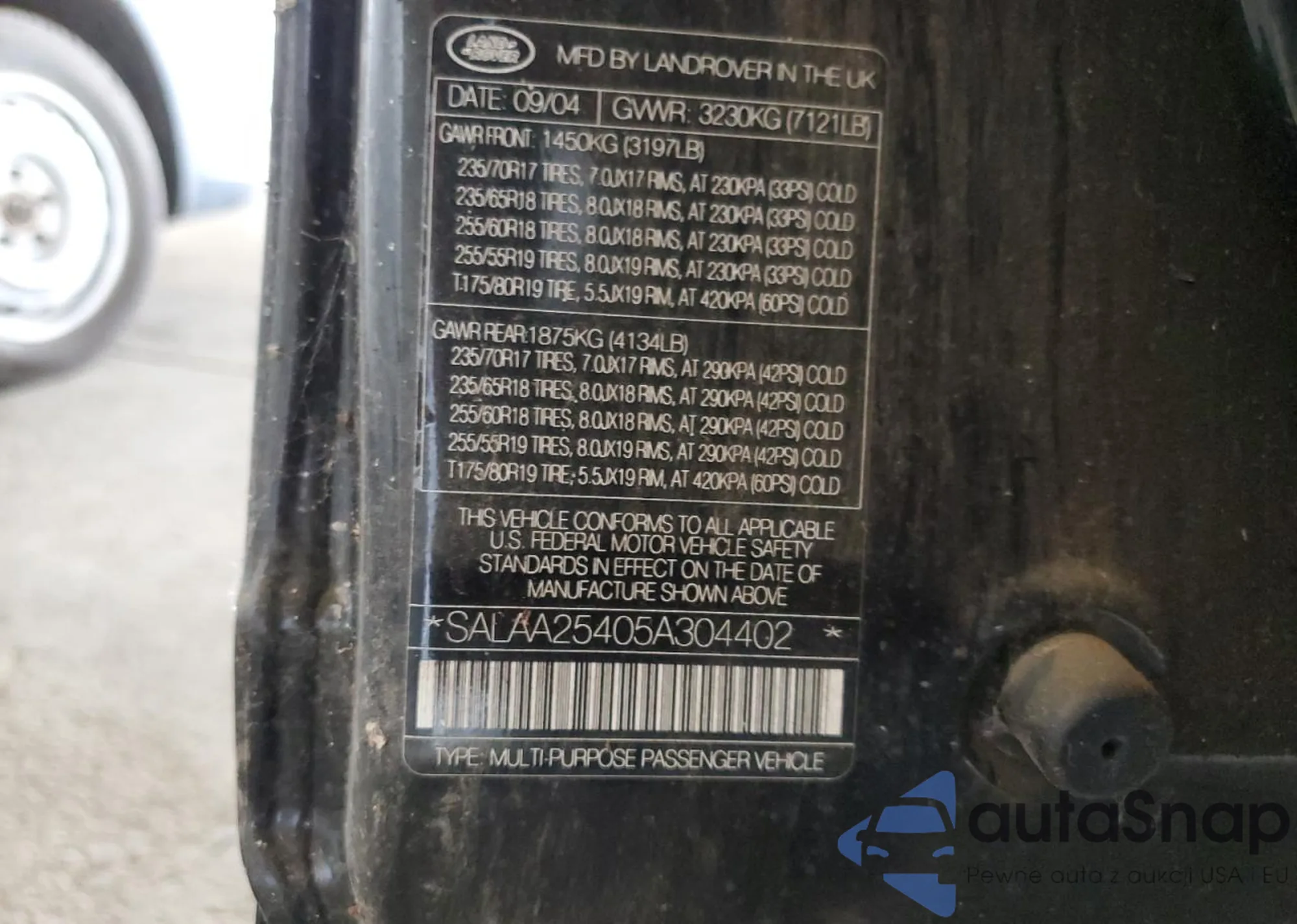 VIN: SALAA25405A304402