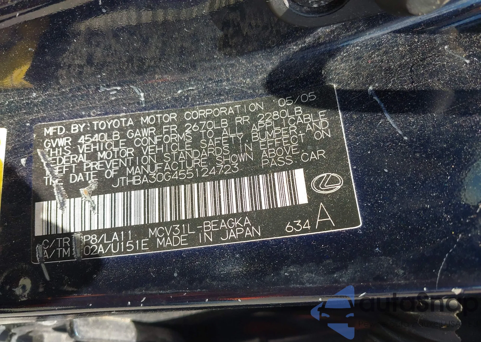 VIN: JTHBA30G455124723