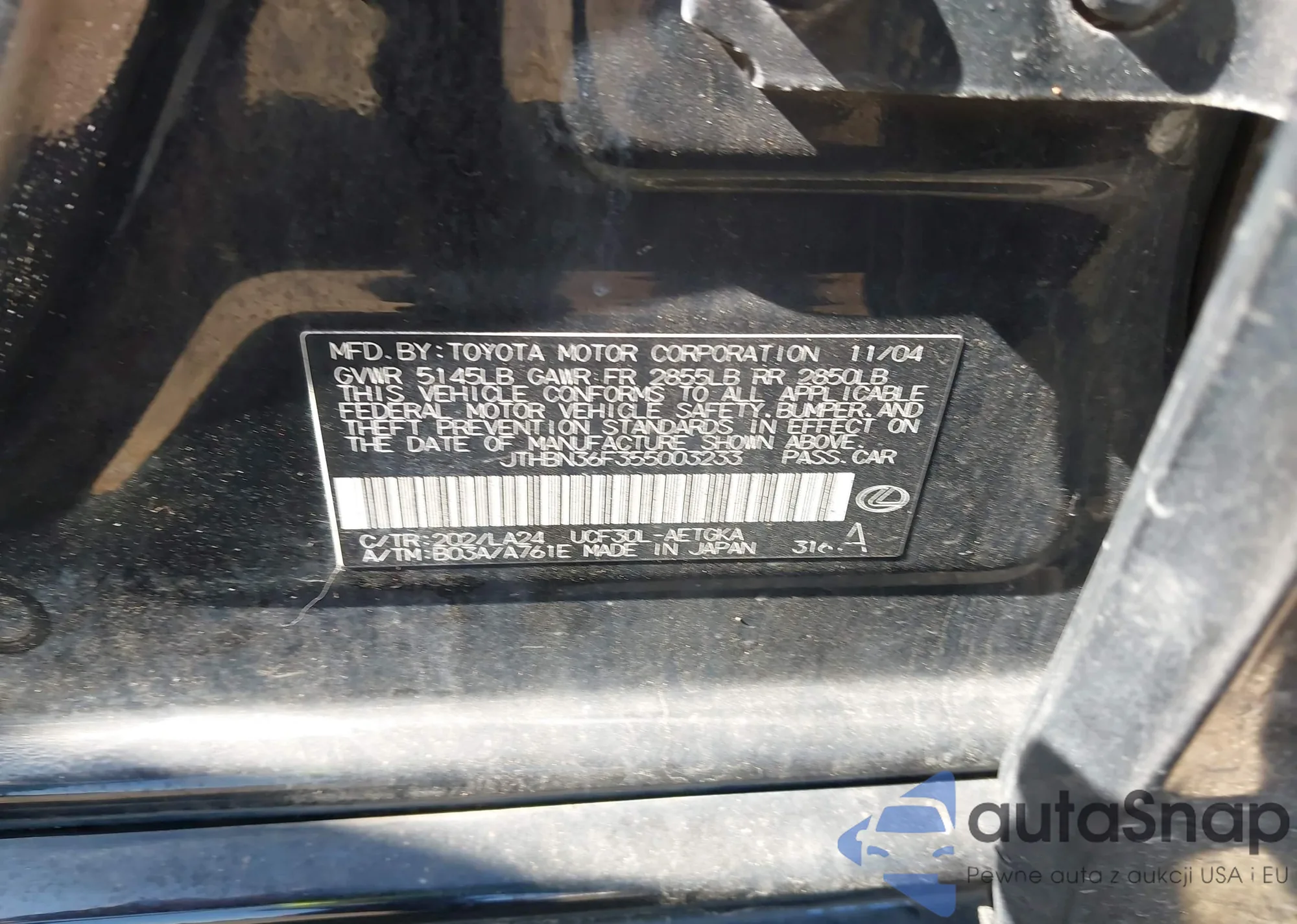 VIN: JTHBN36F355003233