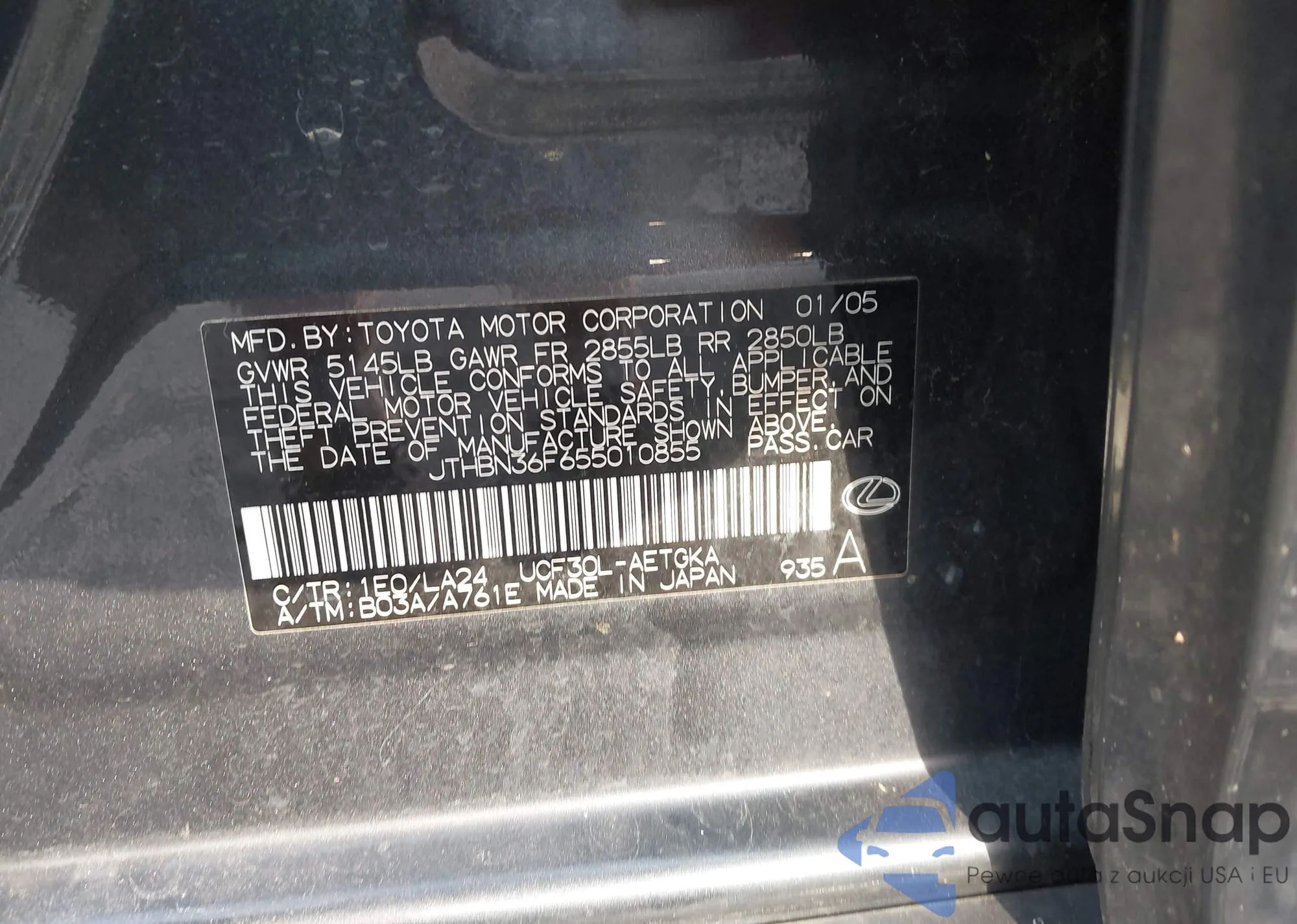 VIN: JTHBN36F655010855