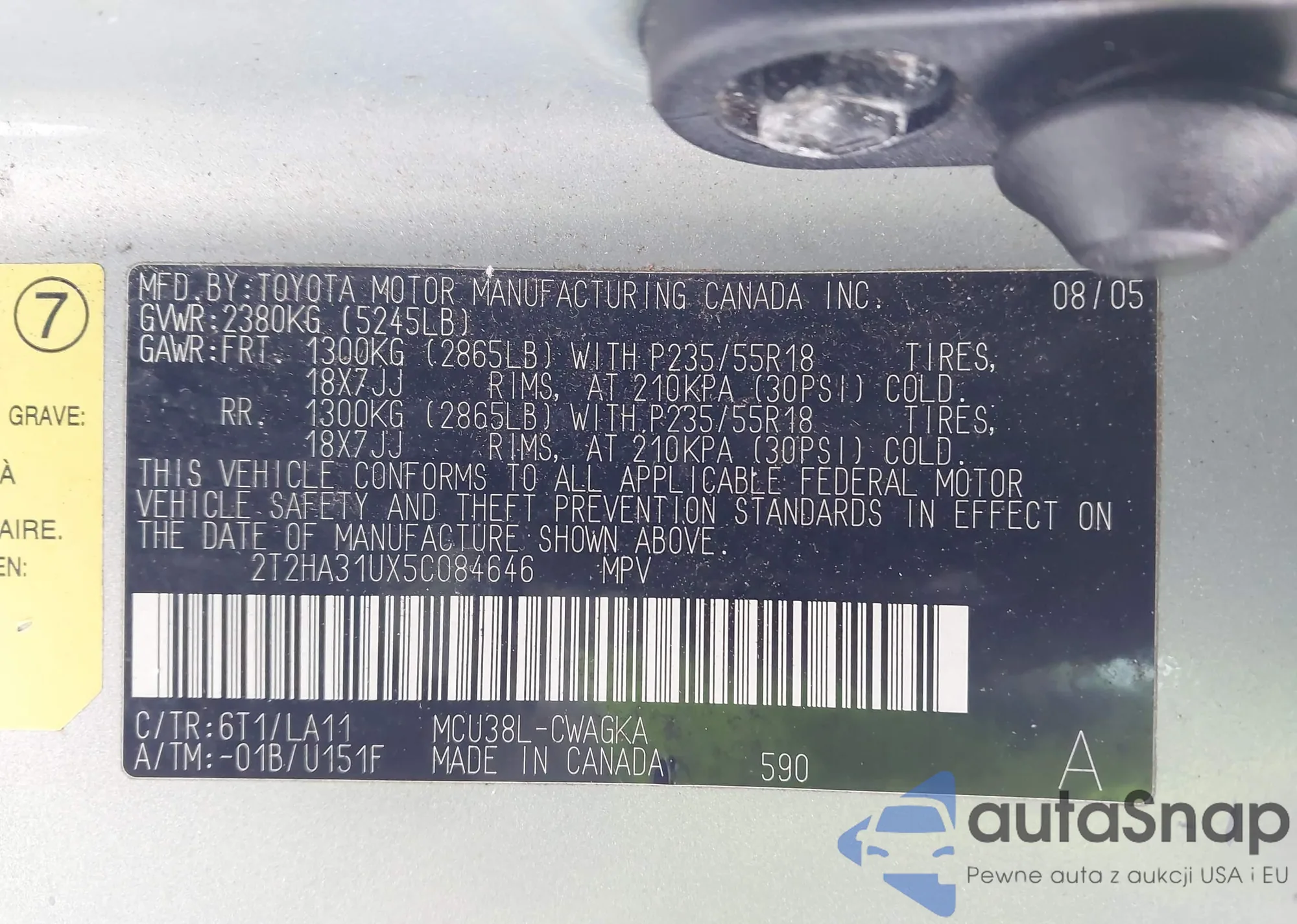 VIN: 2T2HA31UX5C084646