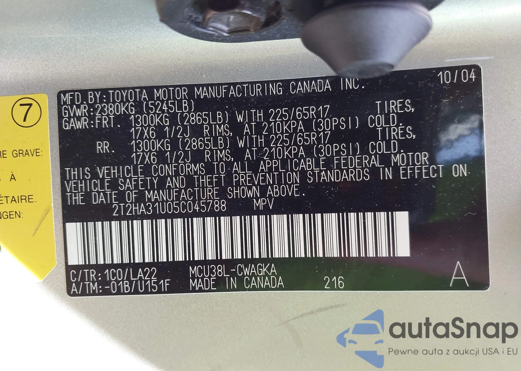 VIN: 2T2HA31U05C045788