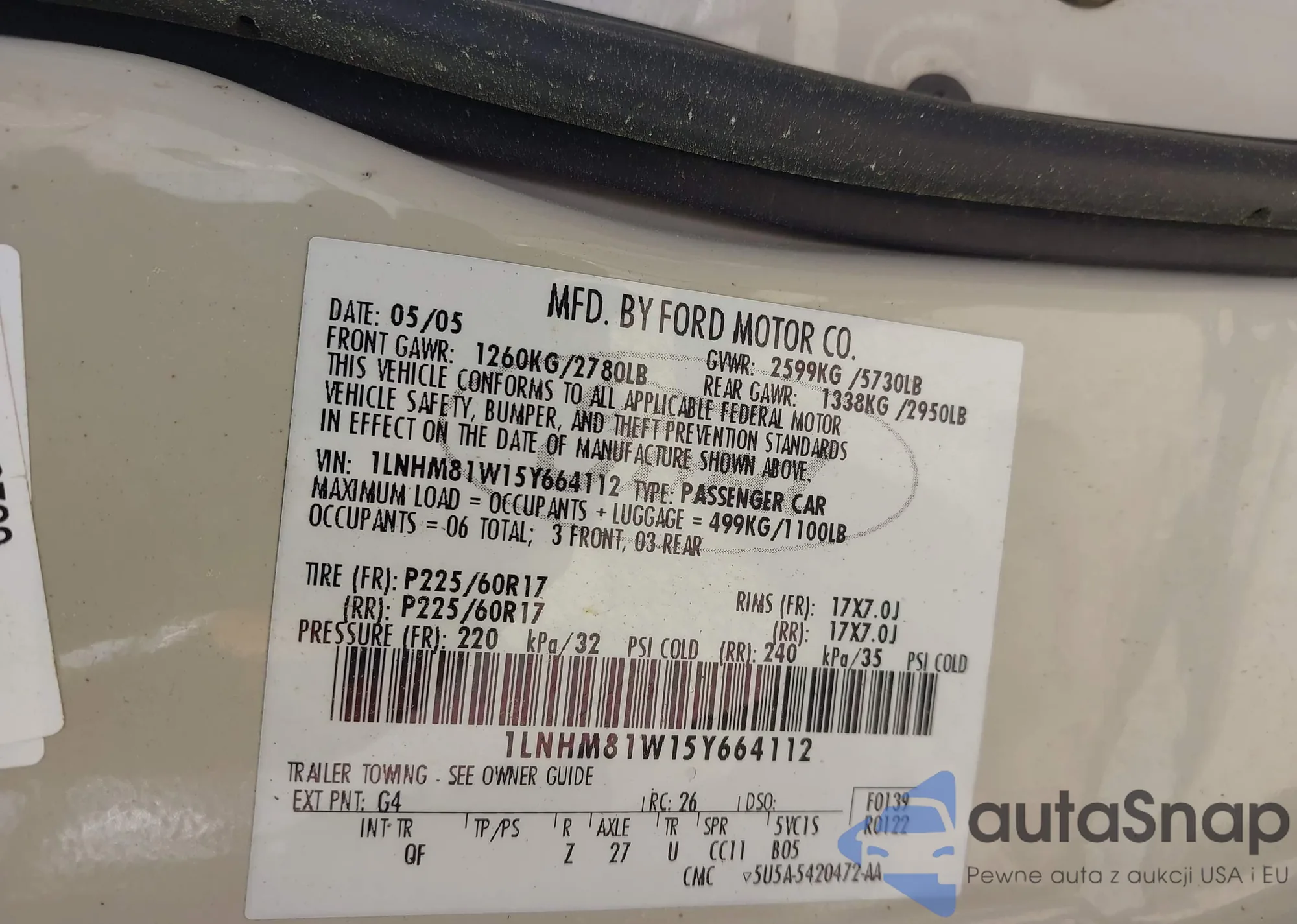 VIN: 1LNHM81W15Y664112