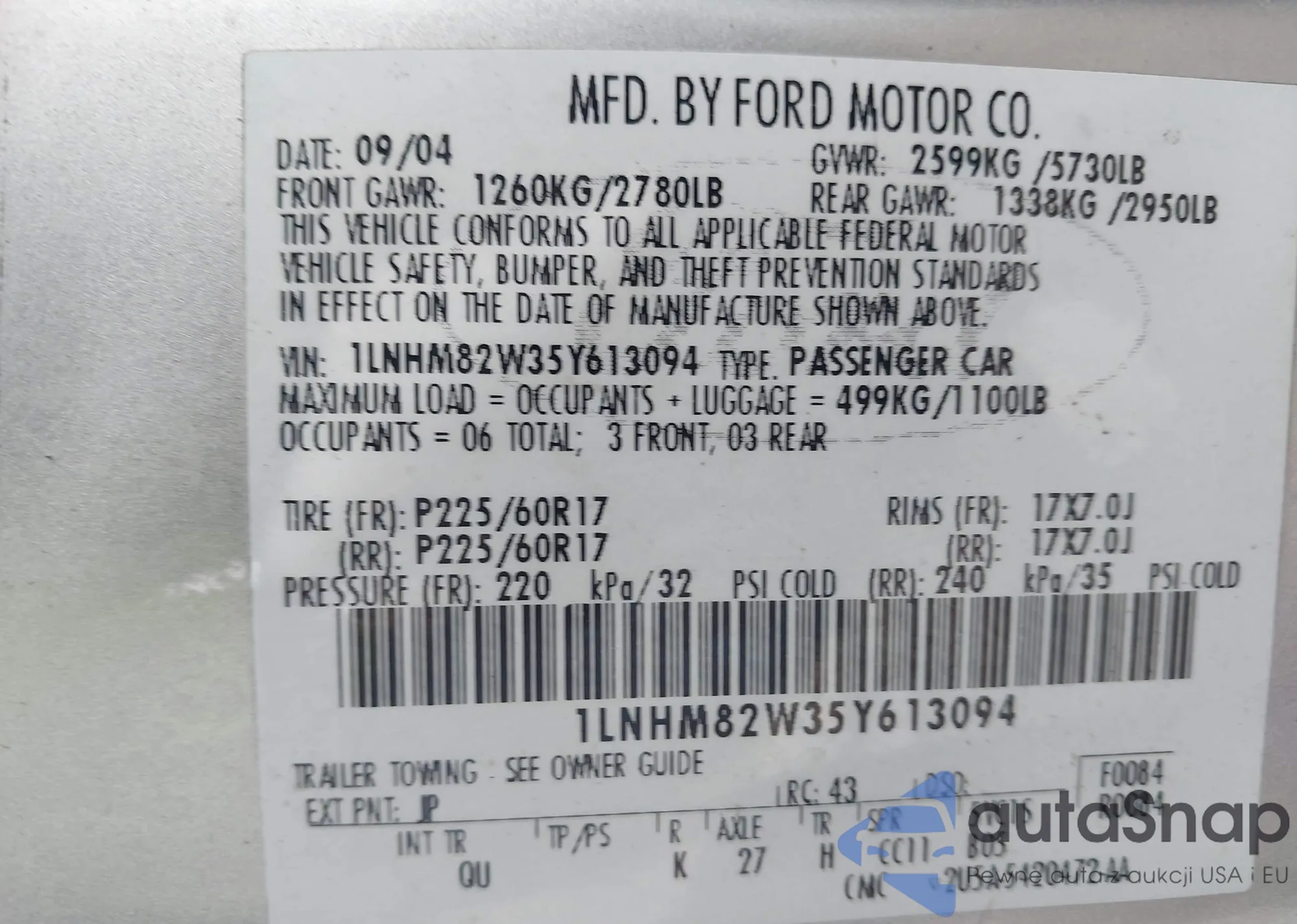 VIN: 1LNHM82W35Y613094