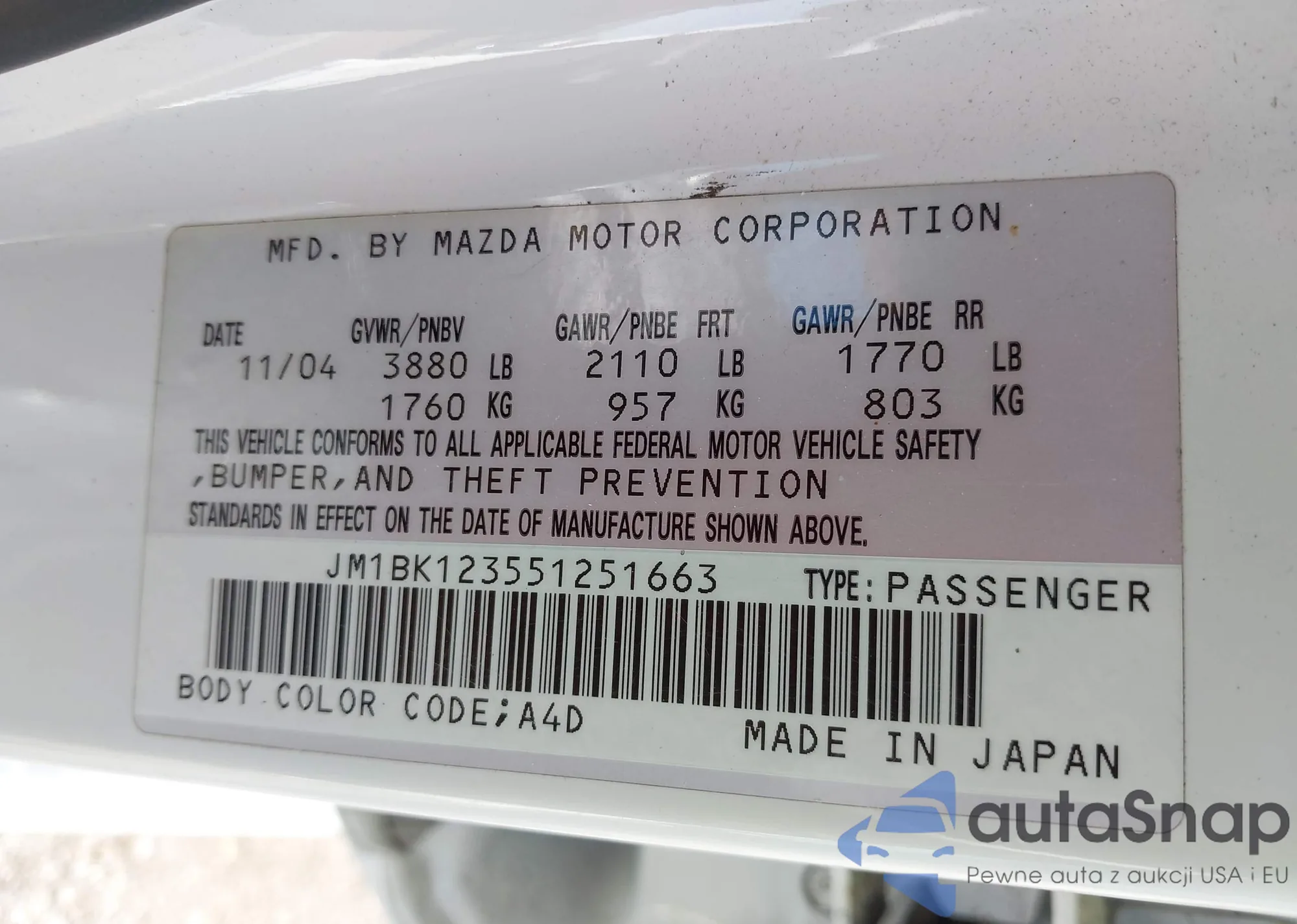 VIN: JM1BK123551251663