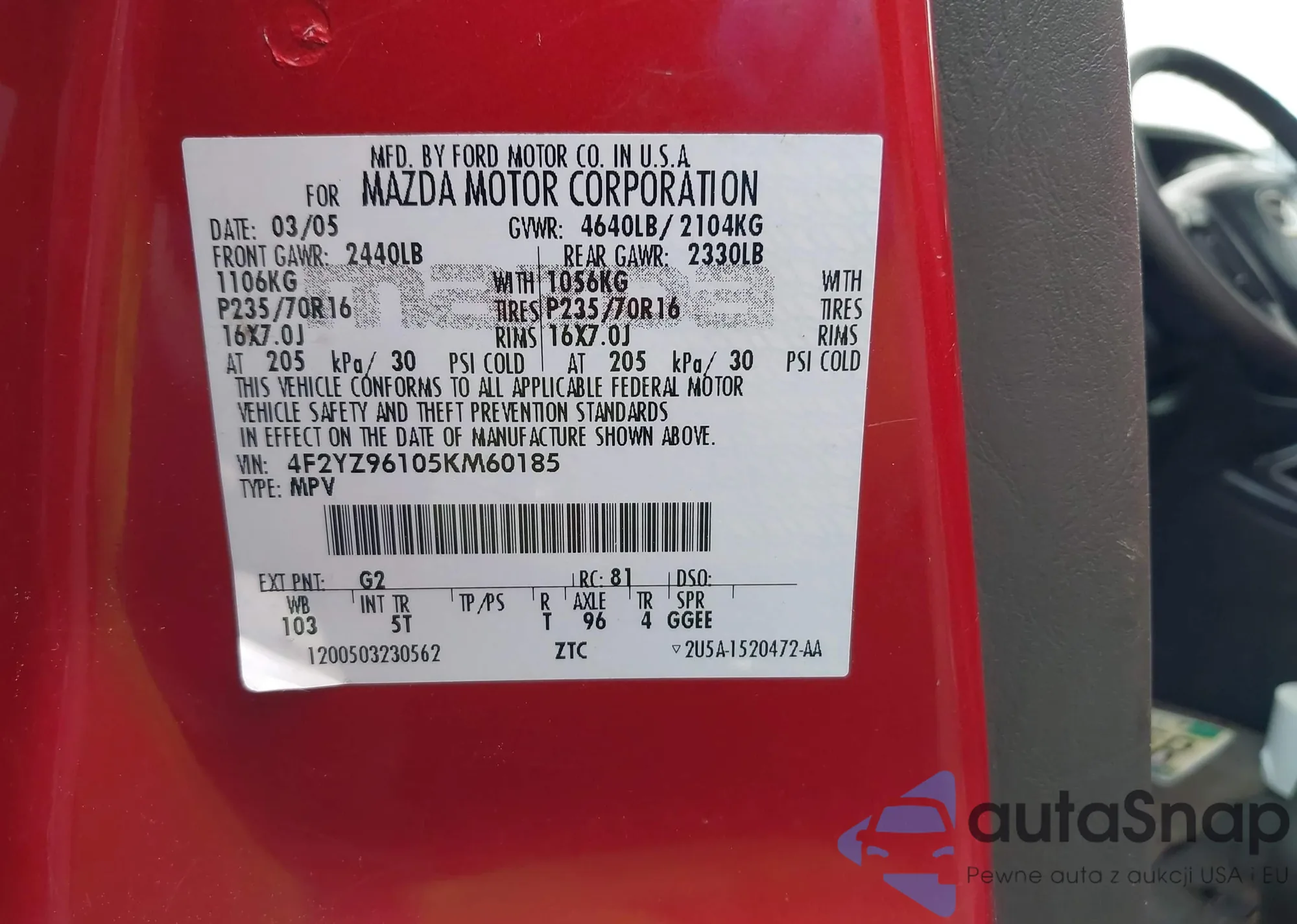 Mazda Tribute 2005 – История автомобиля (продан на IAAI)