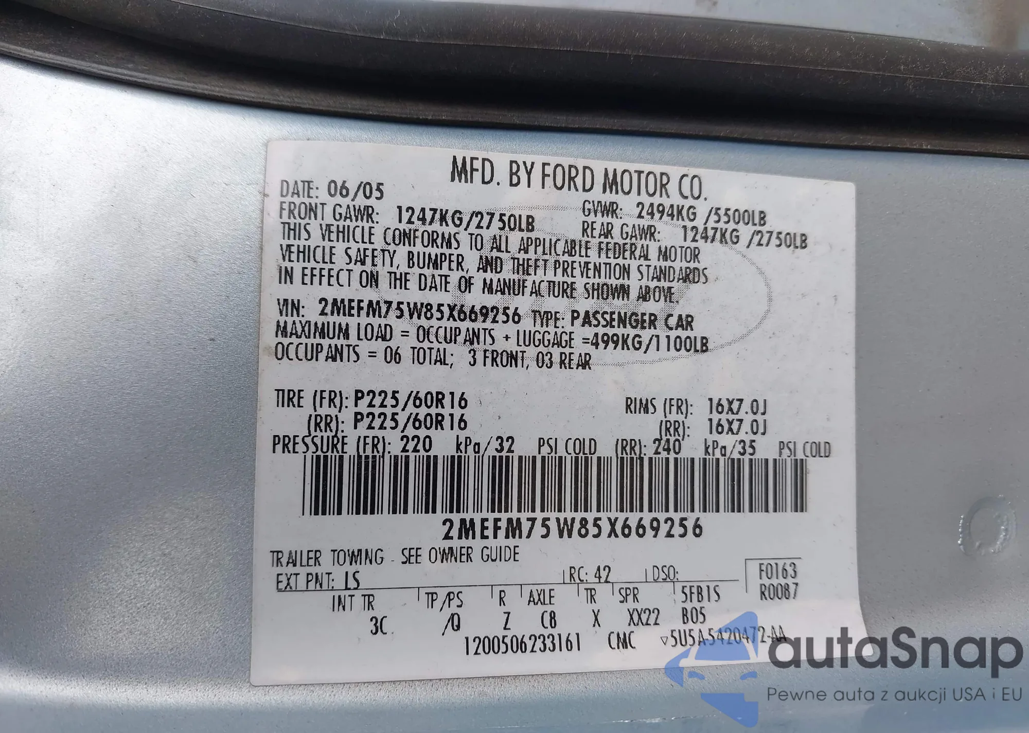 VIN: 2MEFM75W85X669256