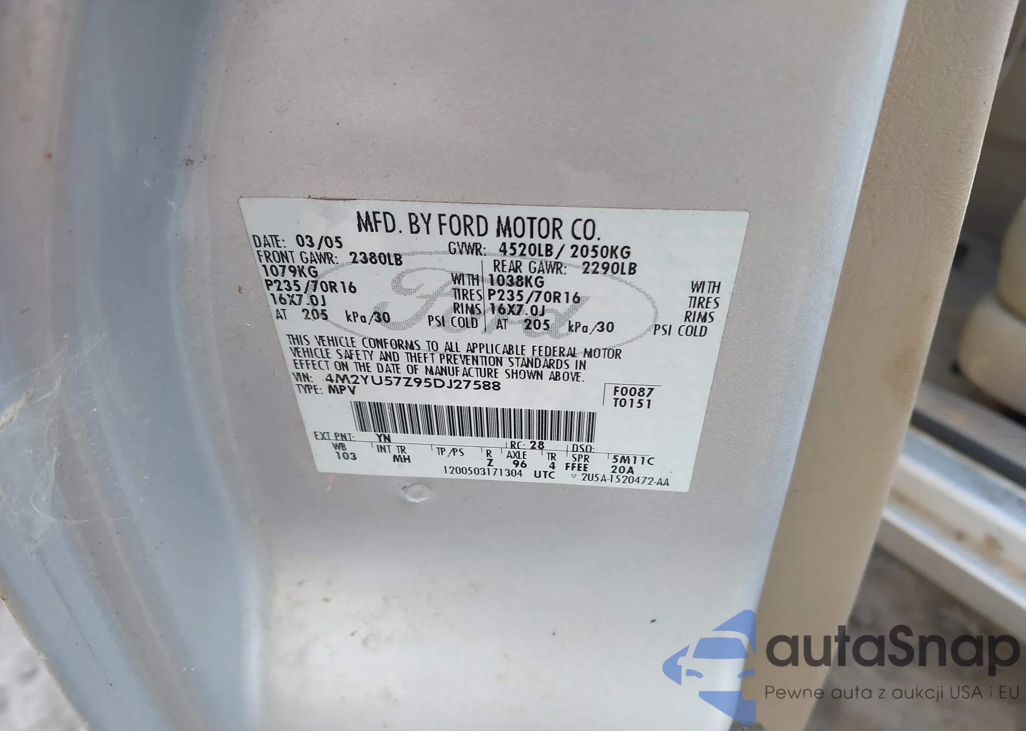 VIN: 4M2YU57Z95DJ27588
