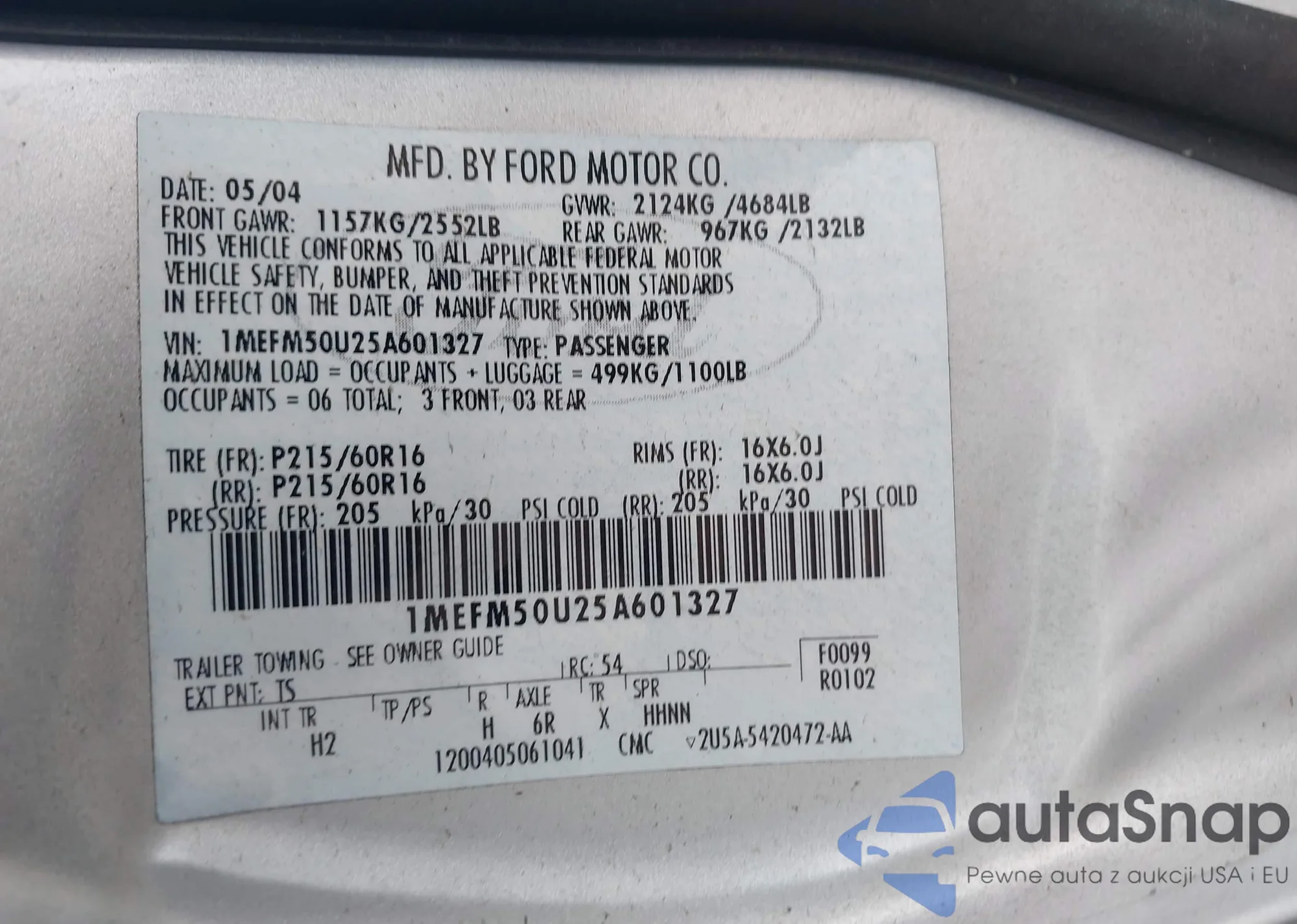 VIN: 1MEFM50U25A601327
