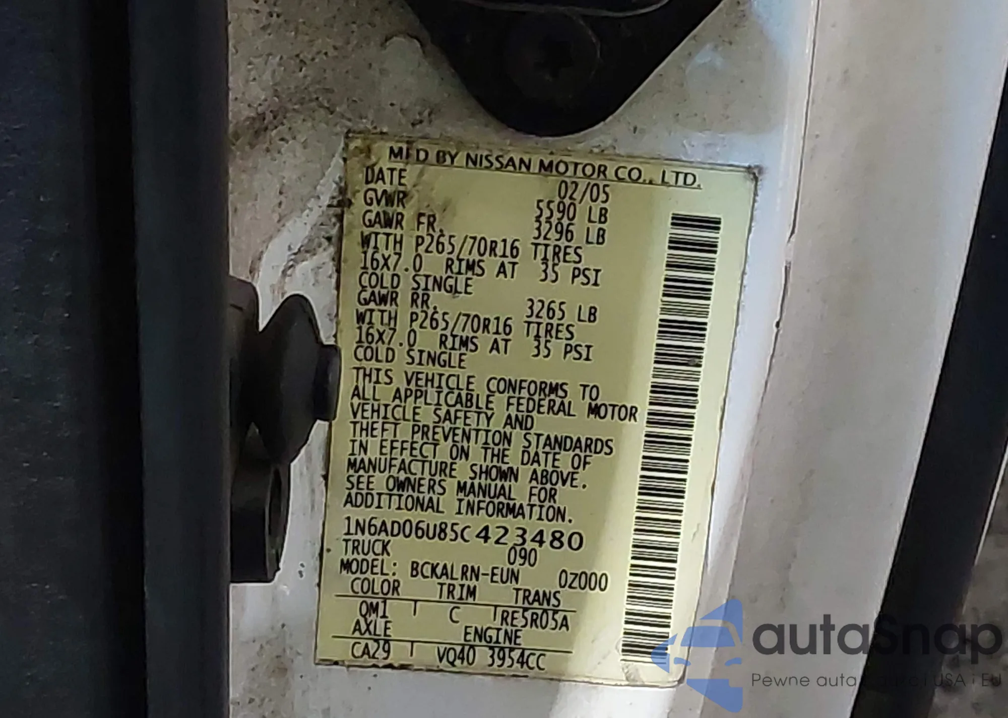 VIN: 1N6AD06U85C423480