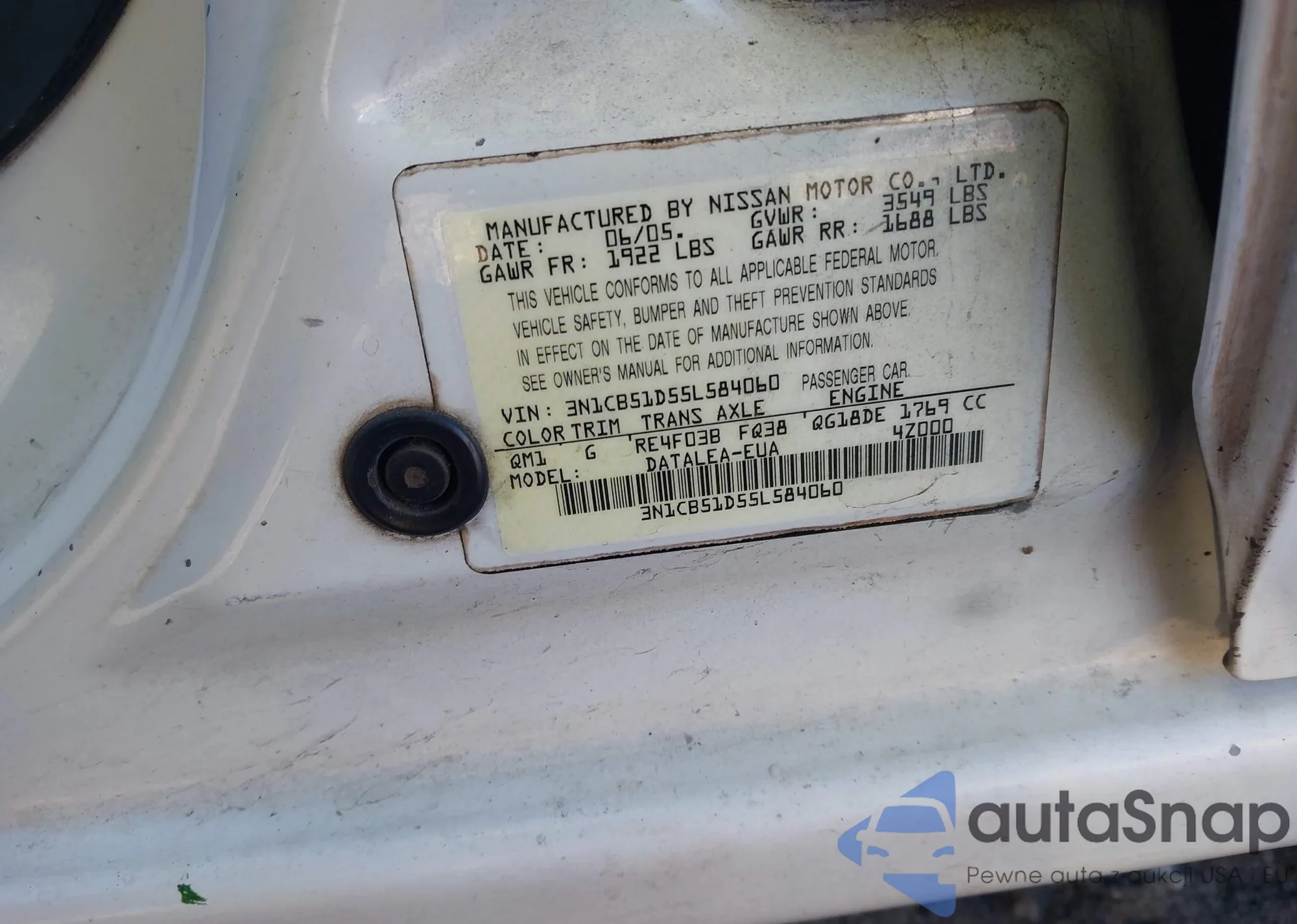 VIN: 3N1CB51D55L584060