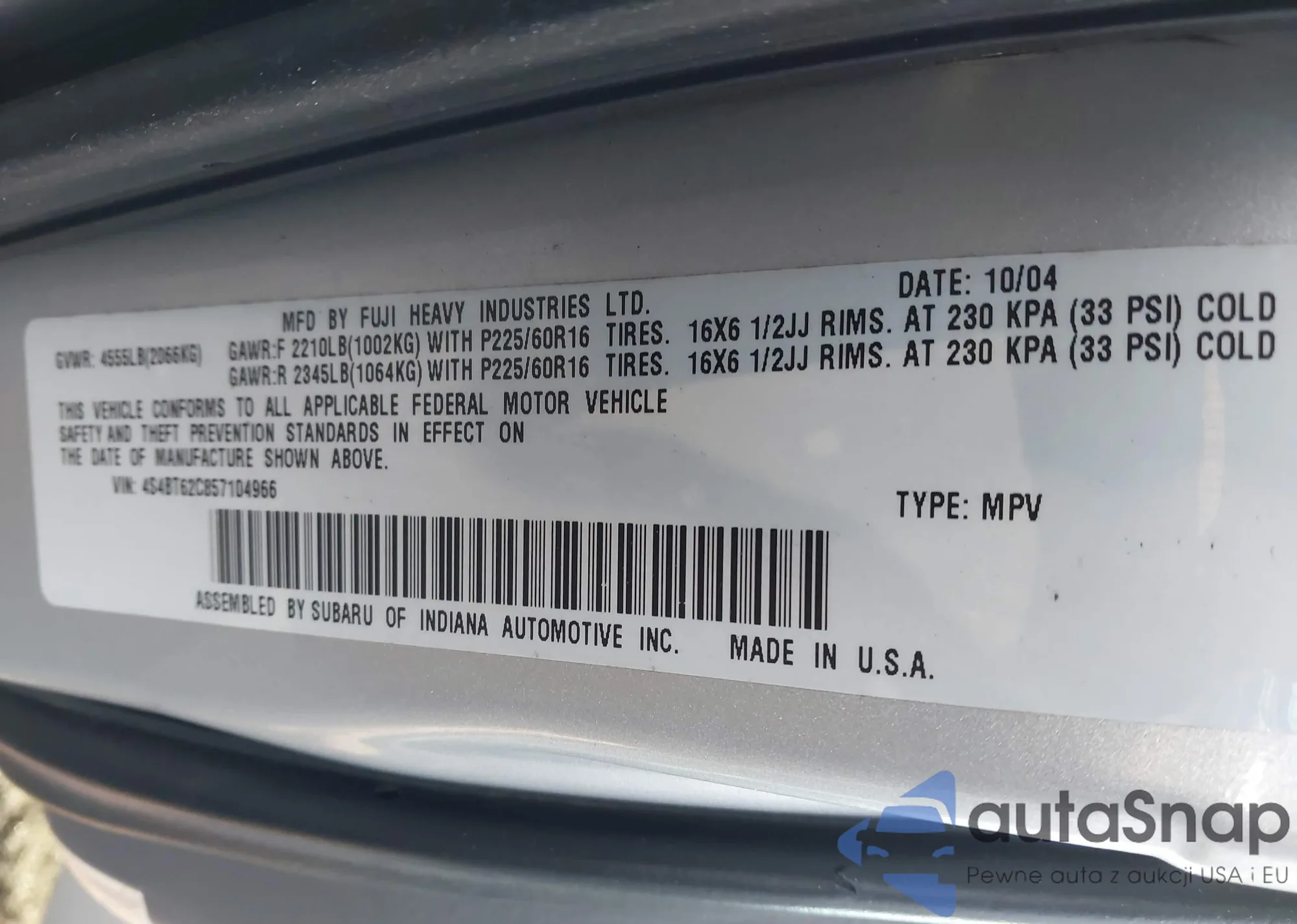 VIN: 4S4BT62C857104966