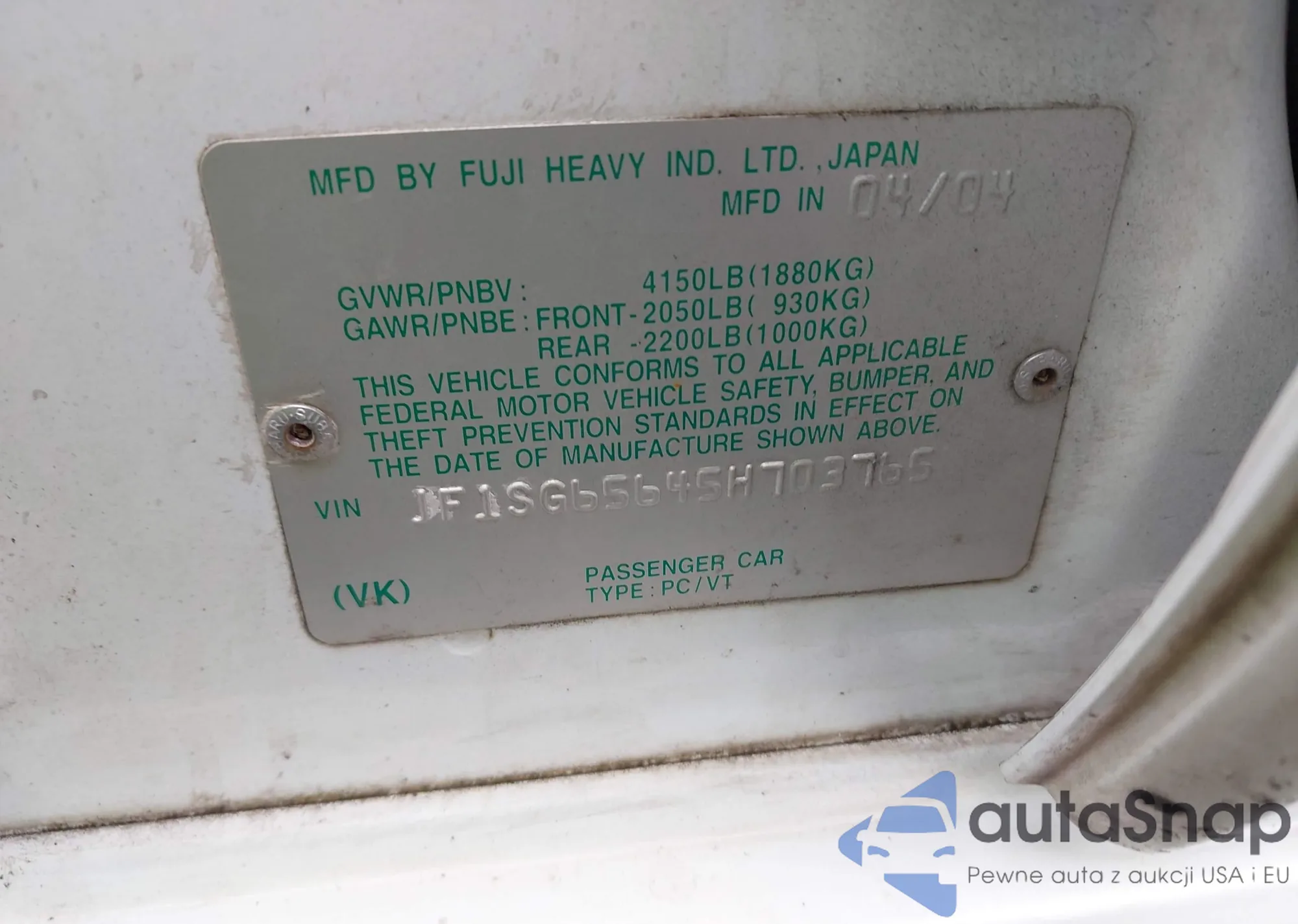 VIN: JF1SG65645H703765