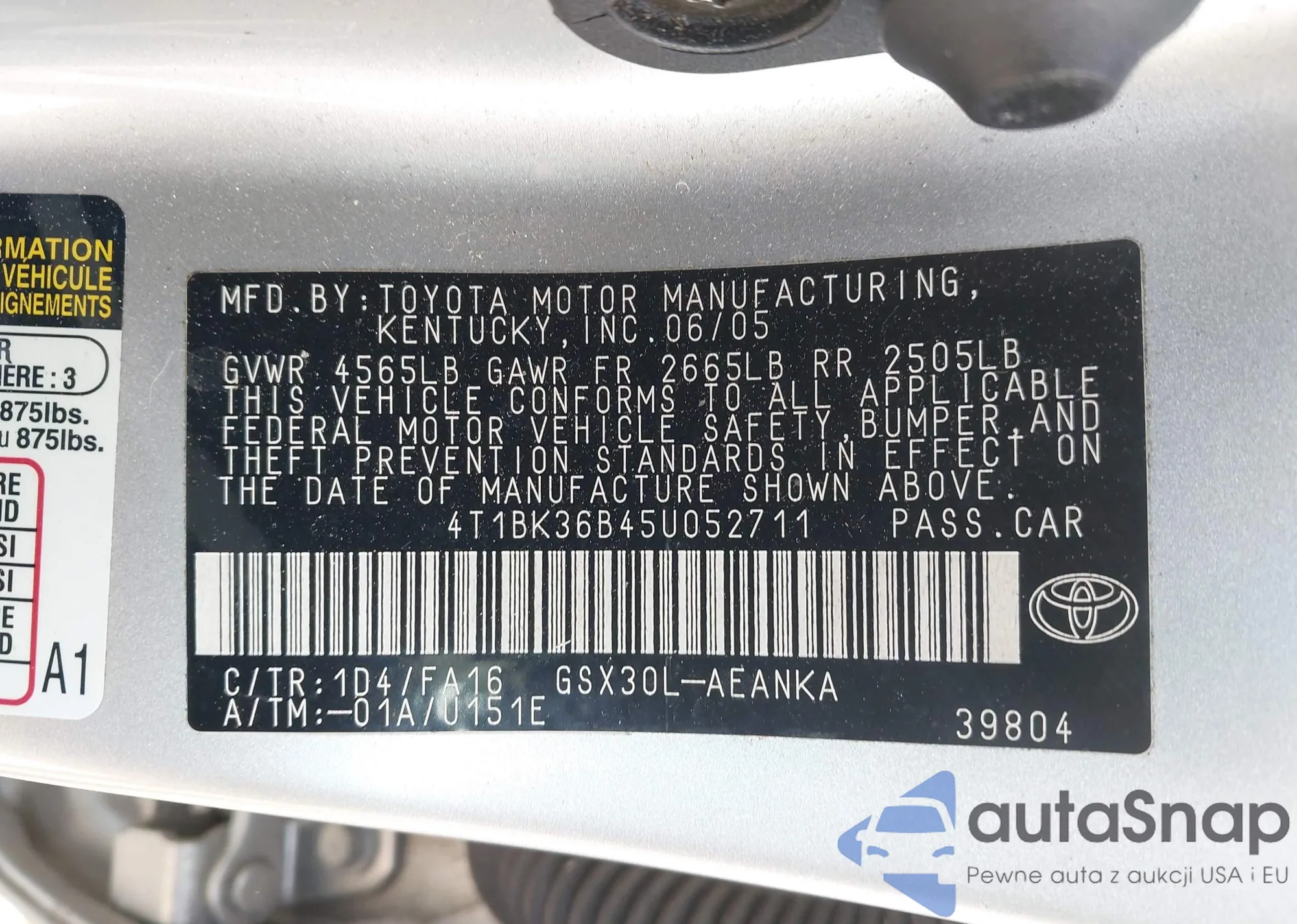 VIN: 4T1BK36B45U052711