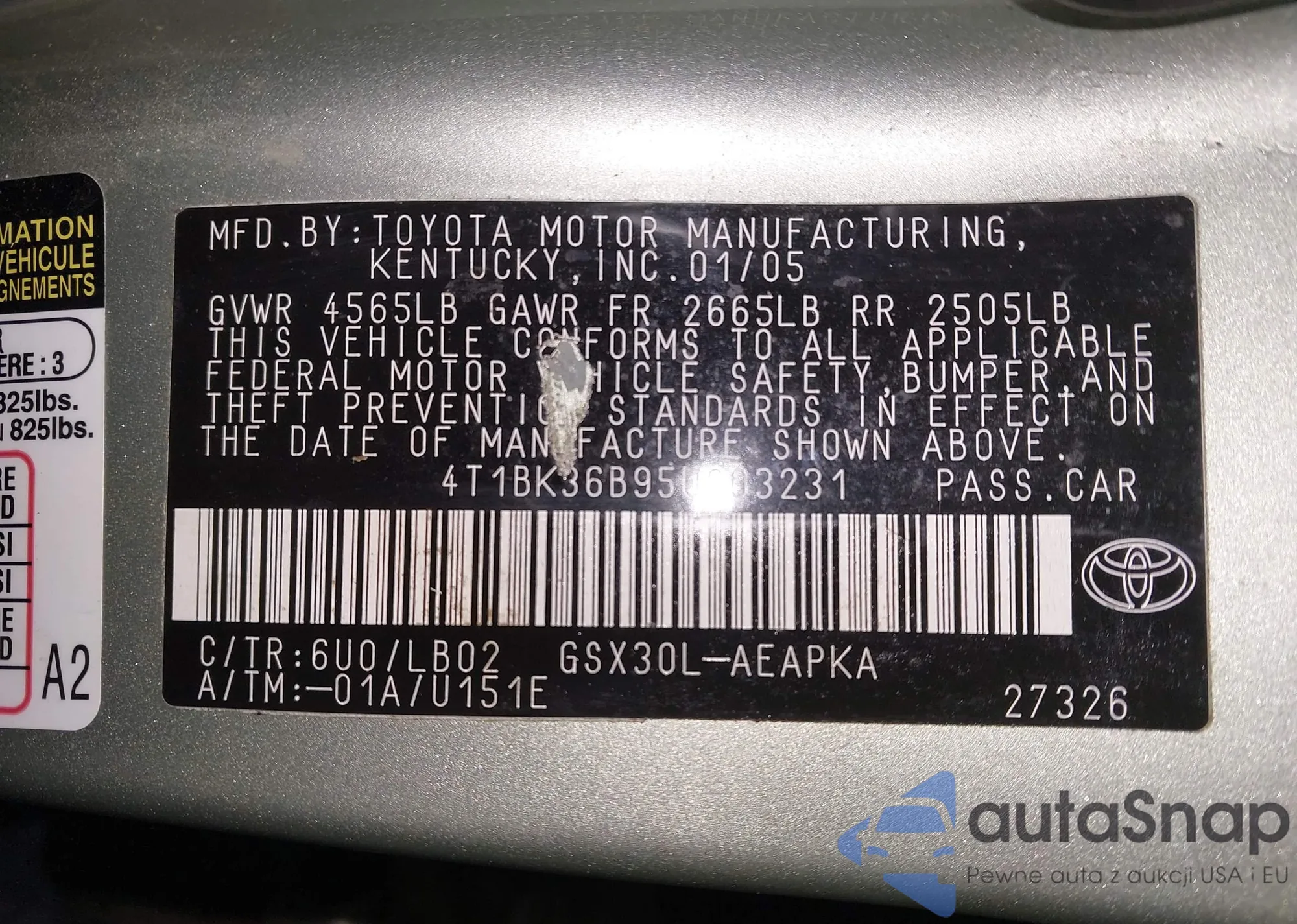 VIN: 4T1BK36B95U003231