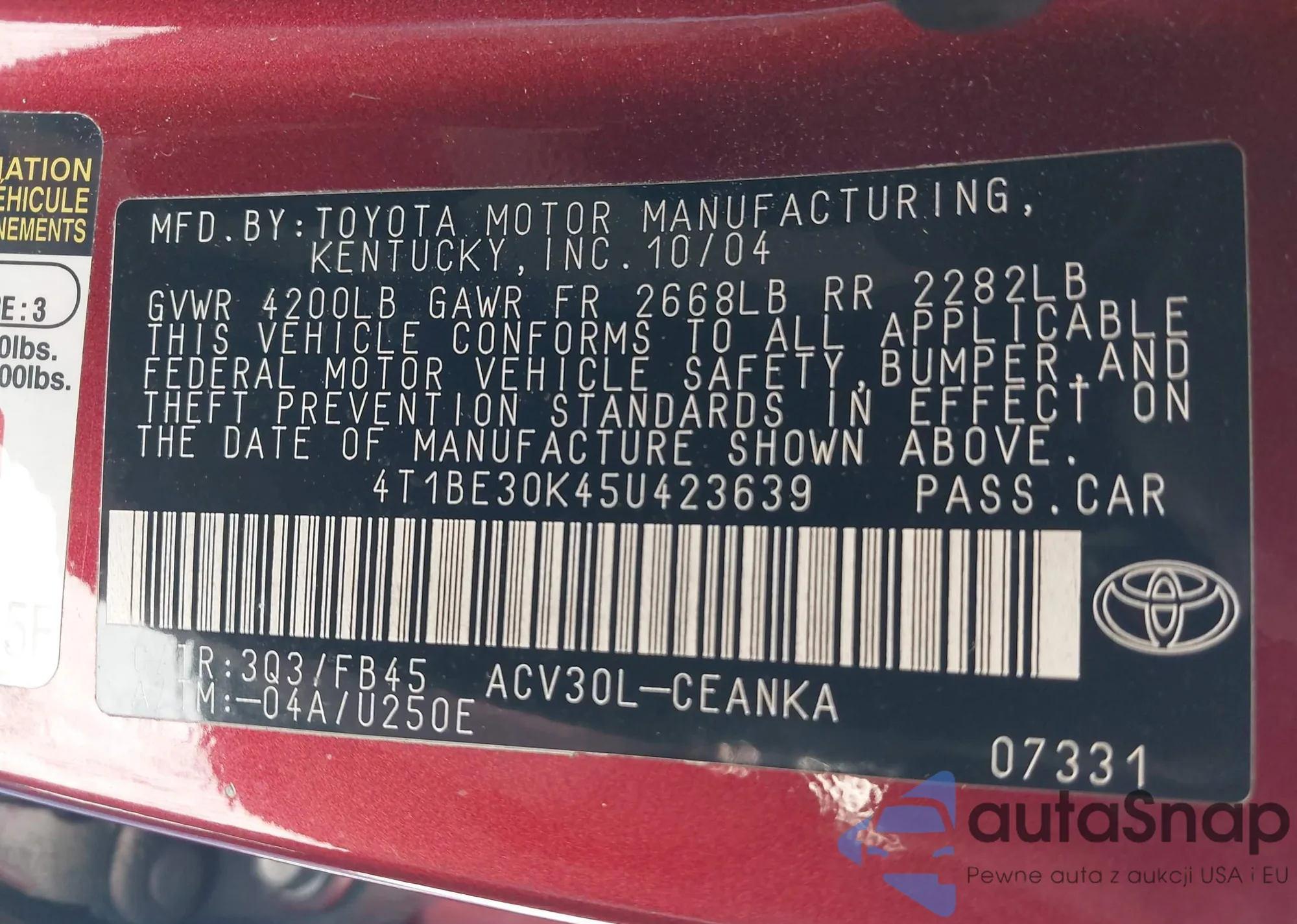 VIN: 4T1BE30K45U423639