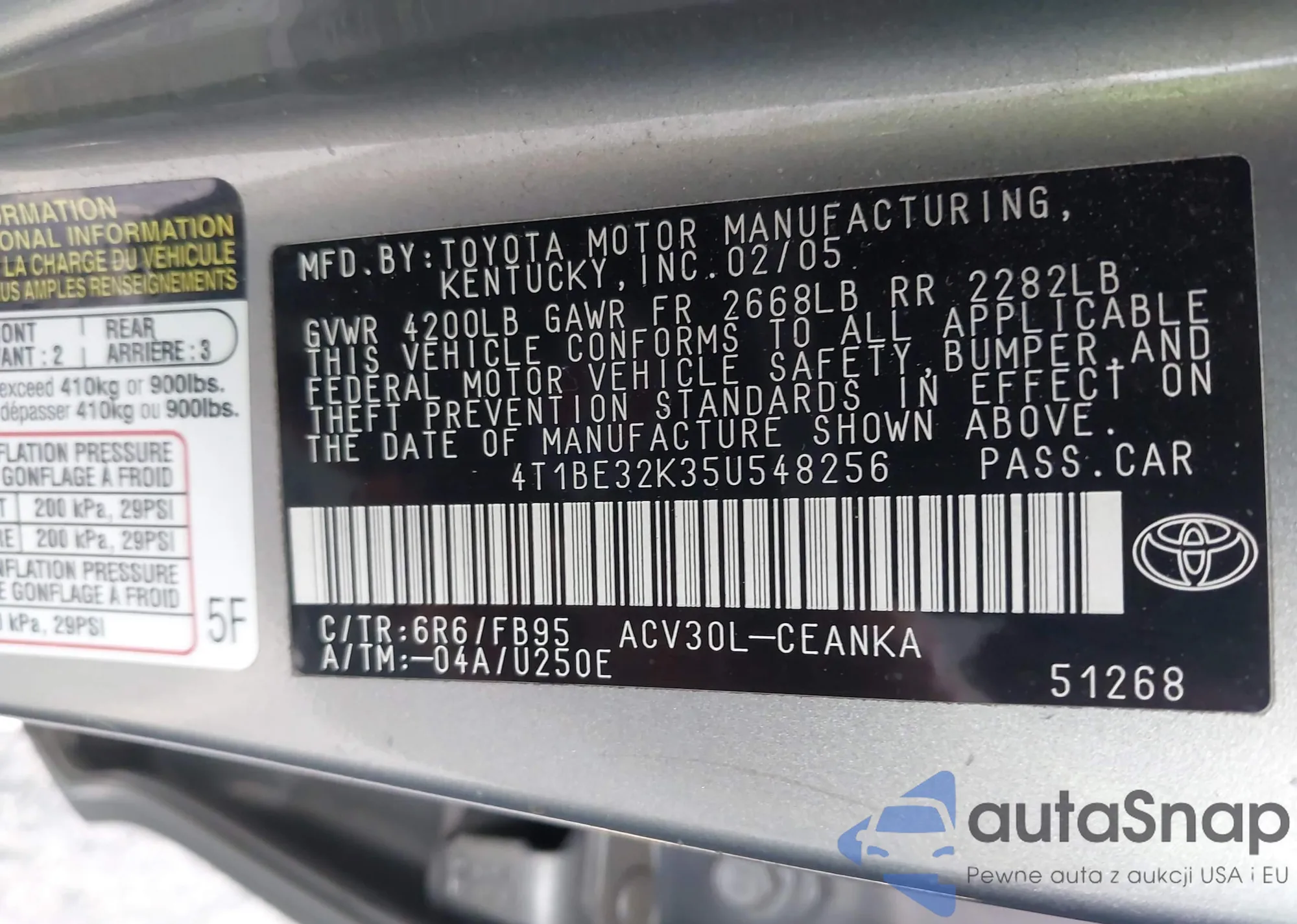 VIN: 4T1BE32K35U548256