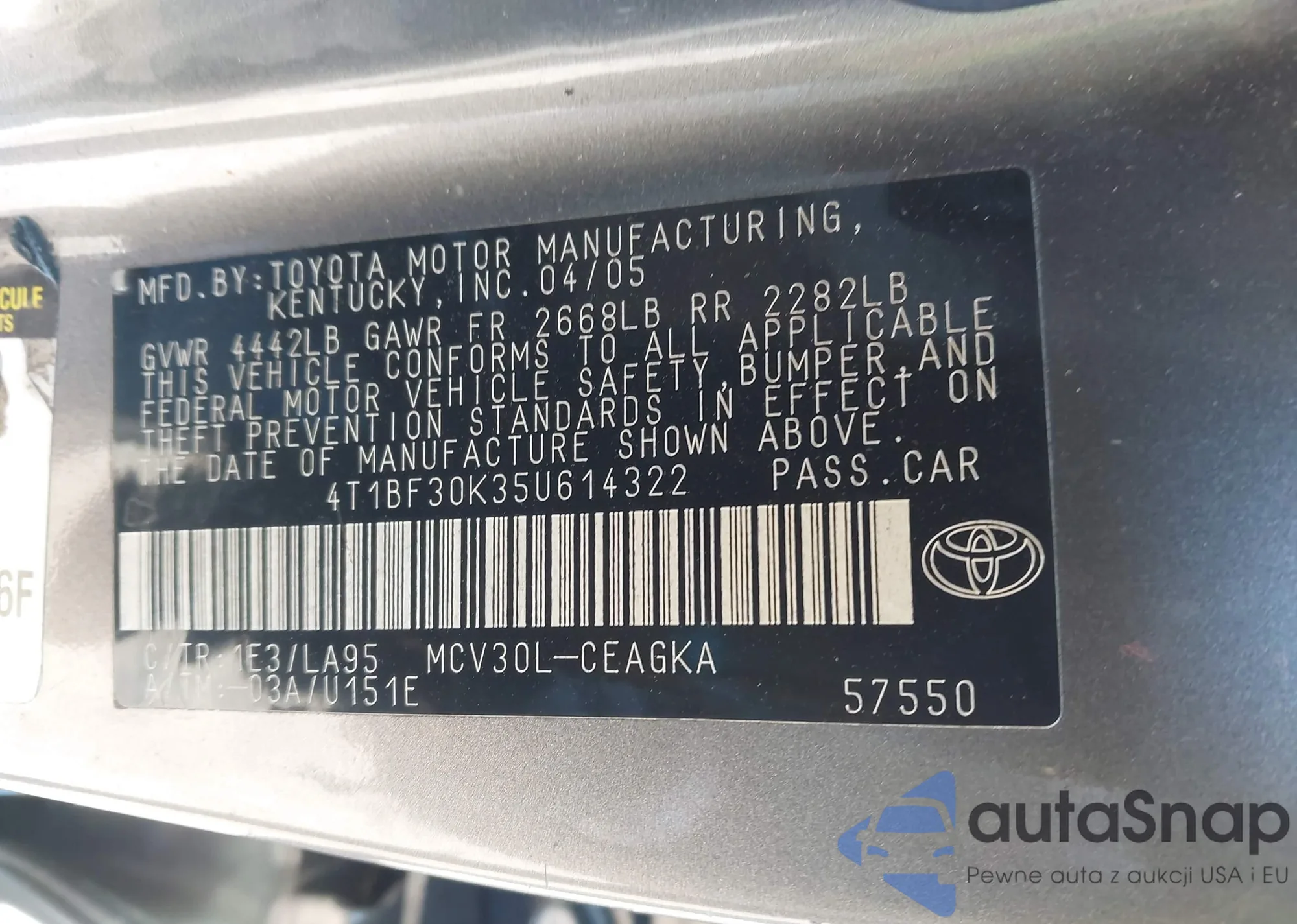• VIN: 4T1BF30K35U614322