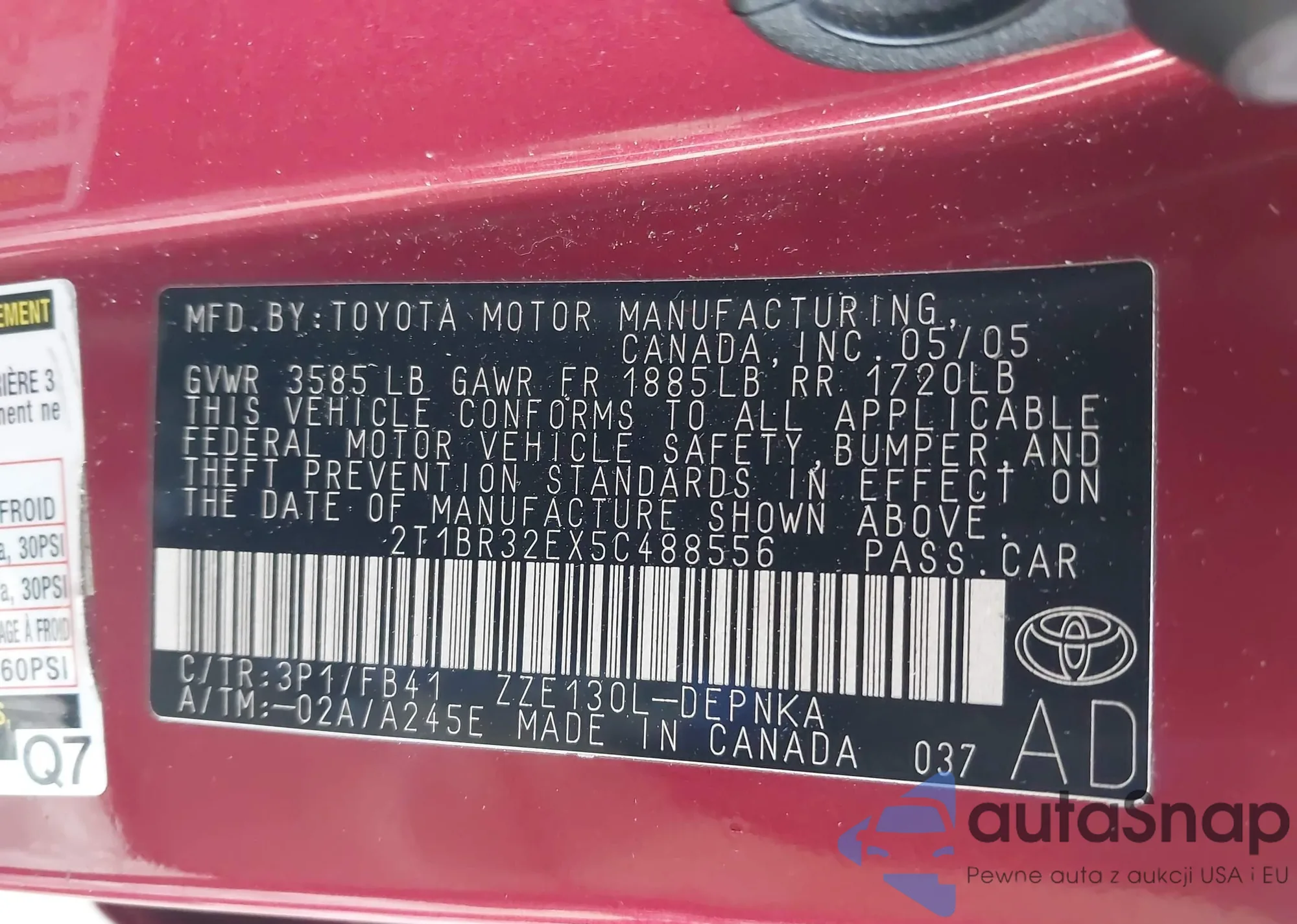 VIN: 2T1BR32EX5C488556