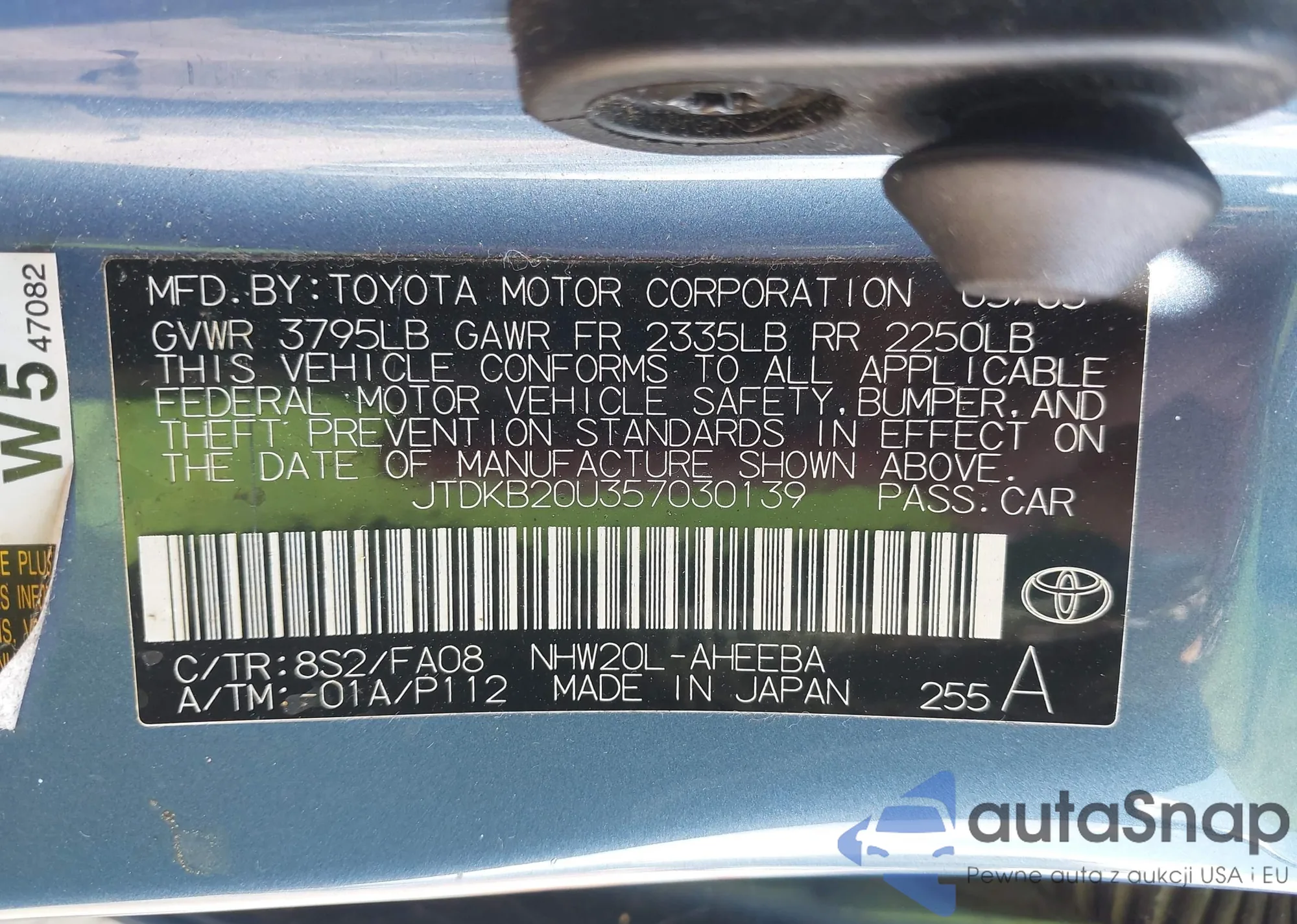 VIN: JTDKB20U357030139