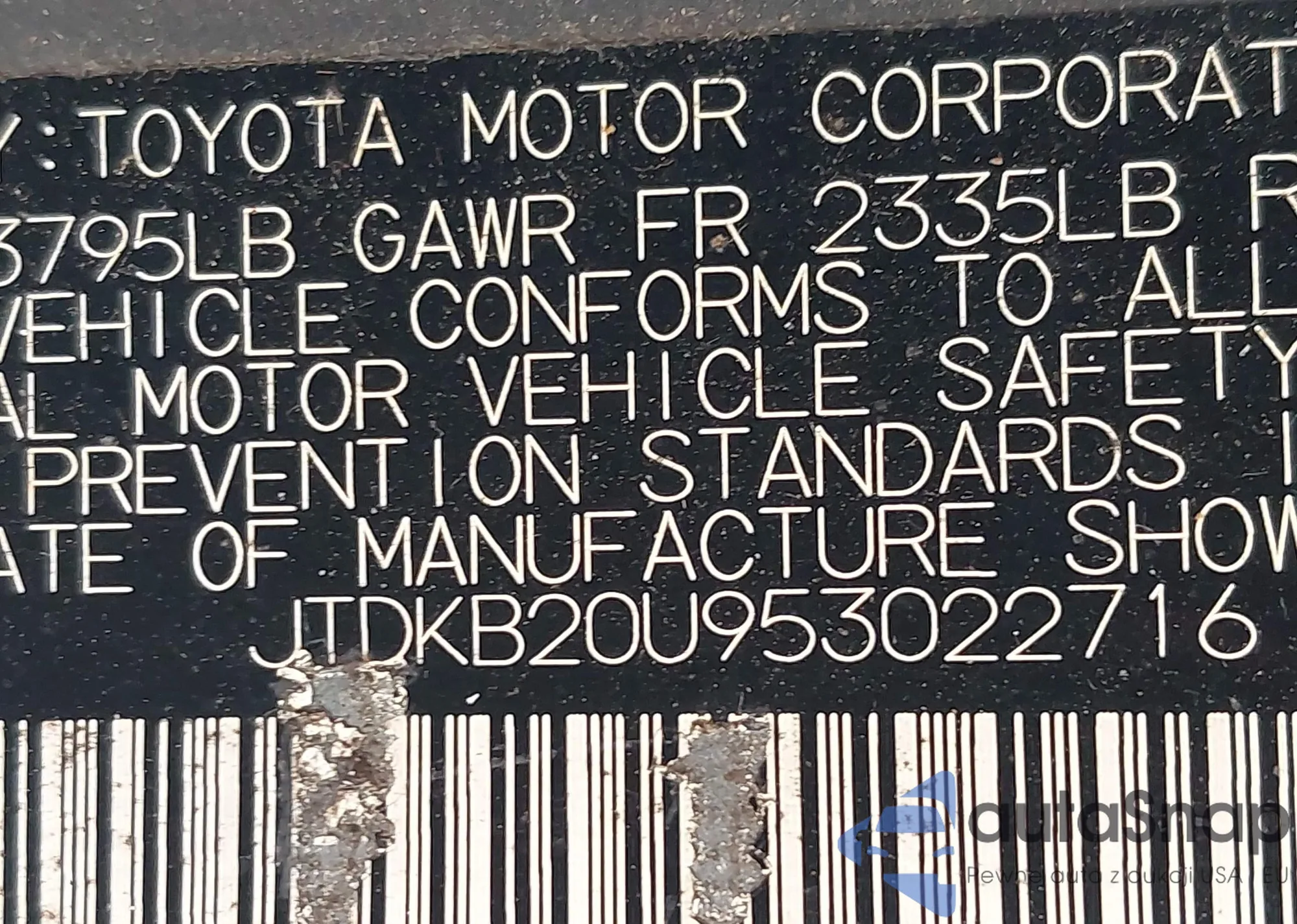 • VIN: JTDKB20U953022716