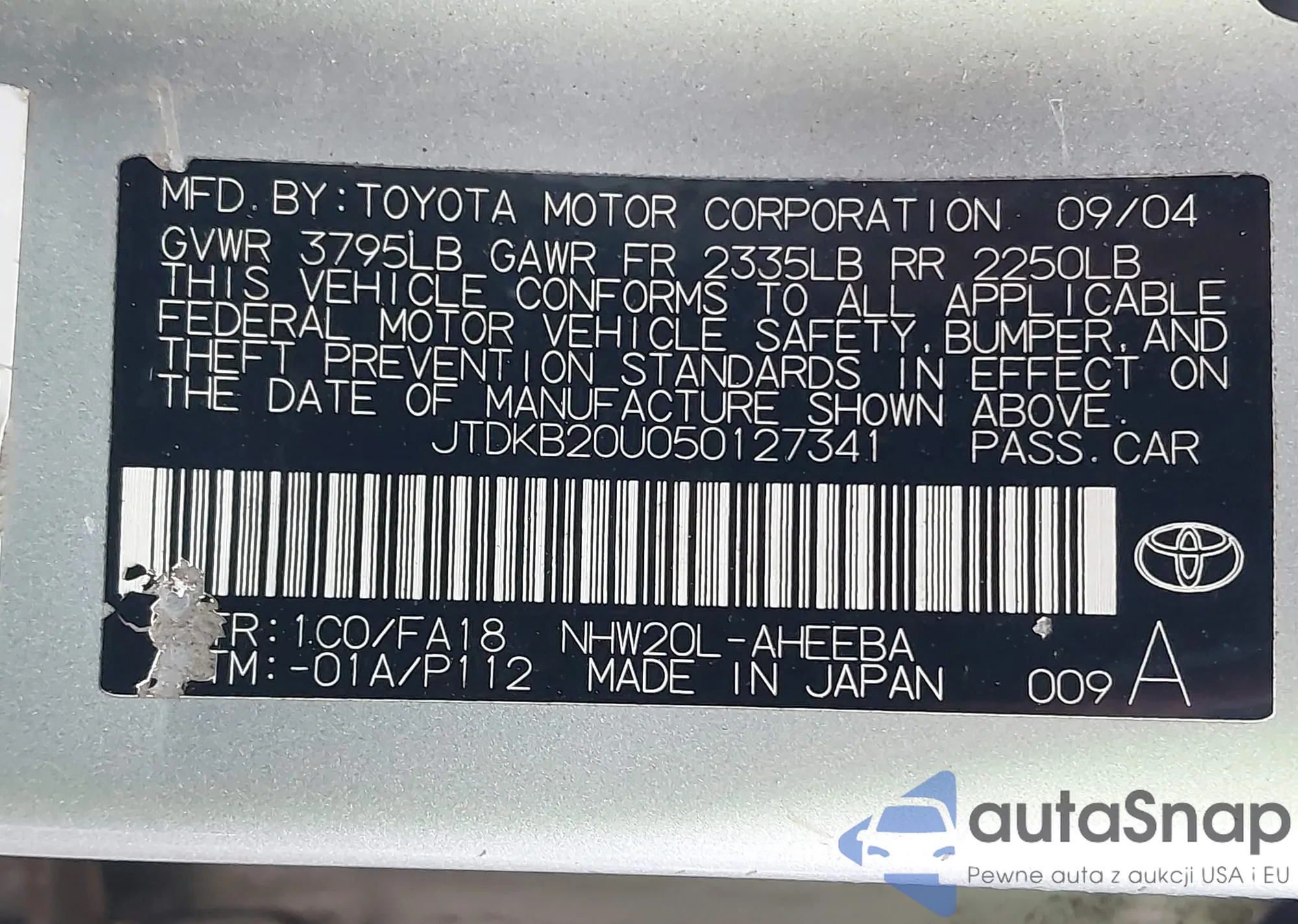 VIN: JTDKB20U050127341