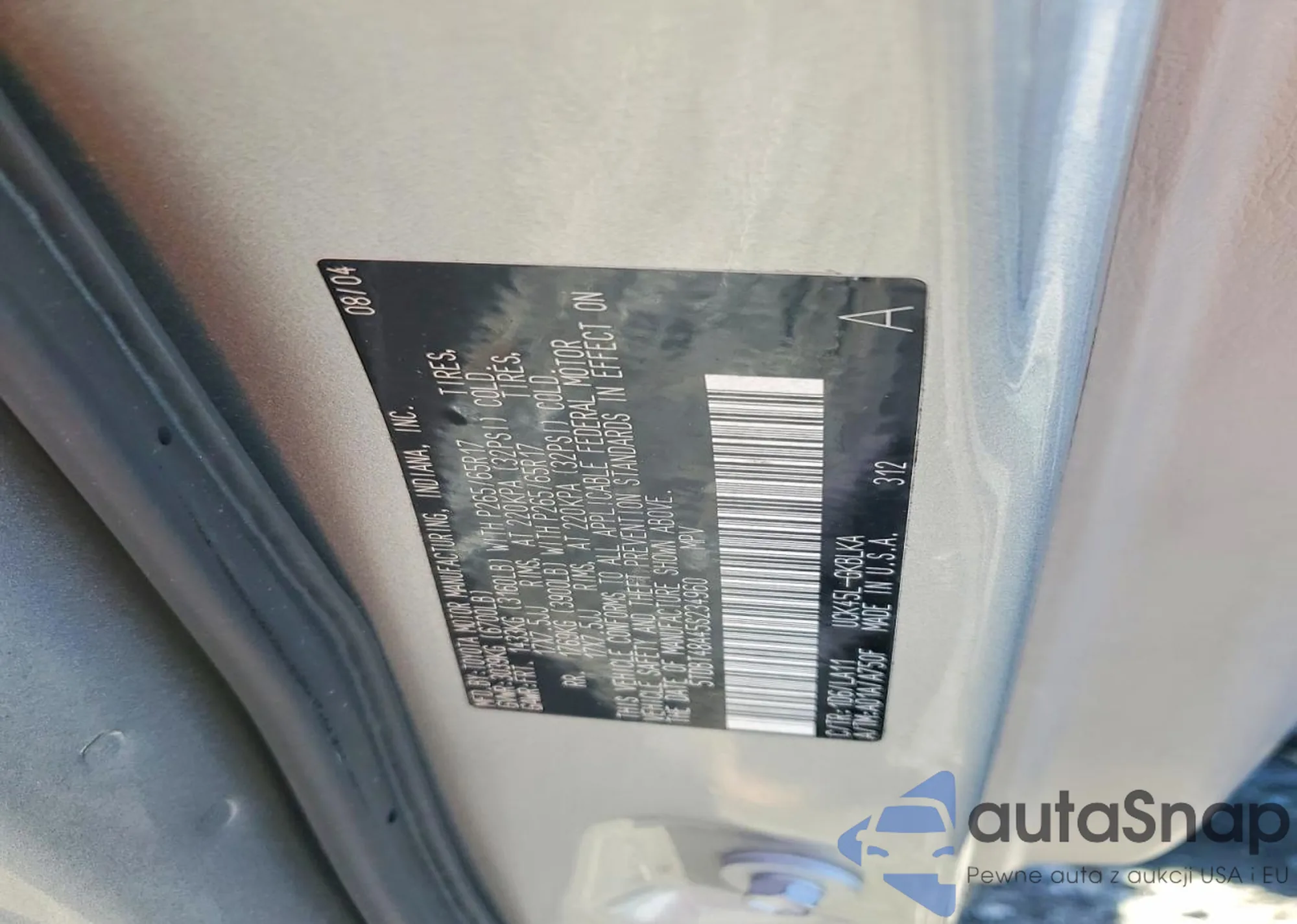 Автомобиль Toyota Sequoia 2005 (VIN 5TDBT48A45S234960) ранее не участвовал в торгах. Документы чистые, пробег соответствует или ниже среднего по рынку. Продаётся страховой компанией — рекомендуем покупку. Доставка в порт займет около 6–8 недель.