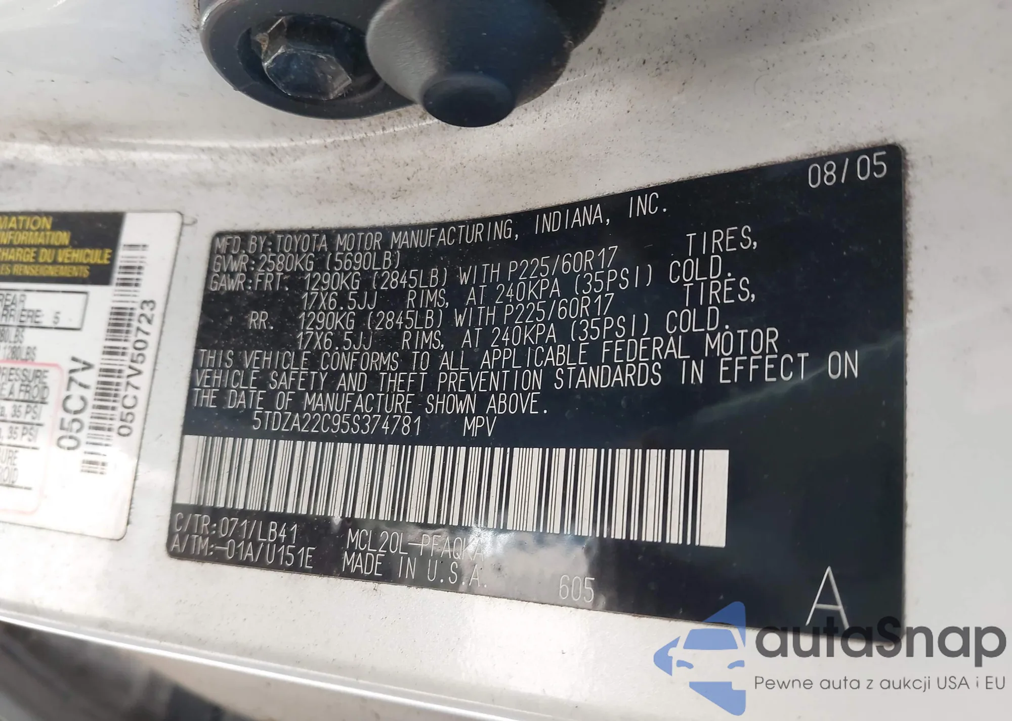 VIN: 5TDZA22C95S374781