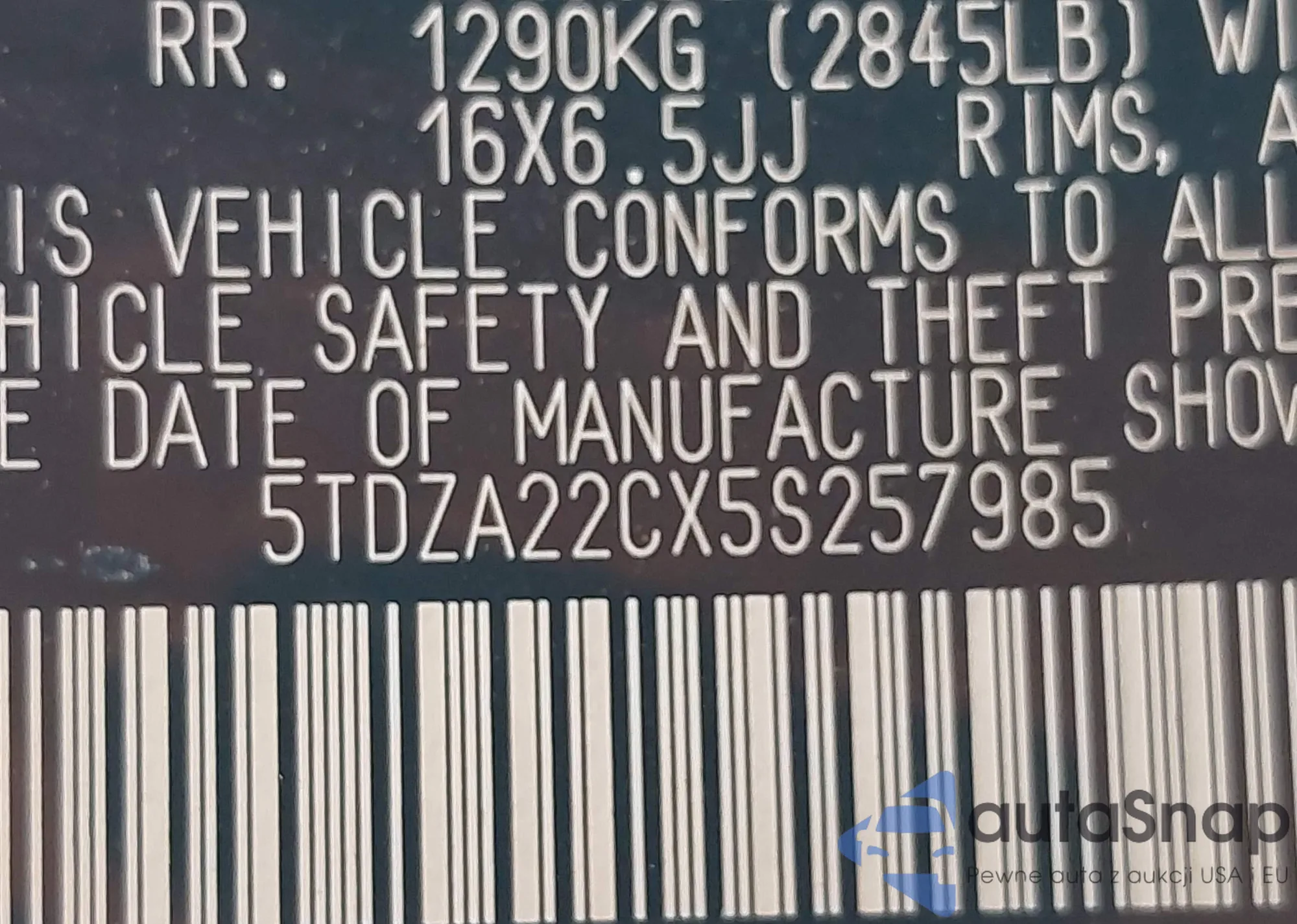 VIN: 5TDZA22CX5S257985