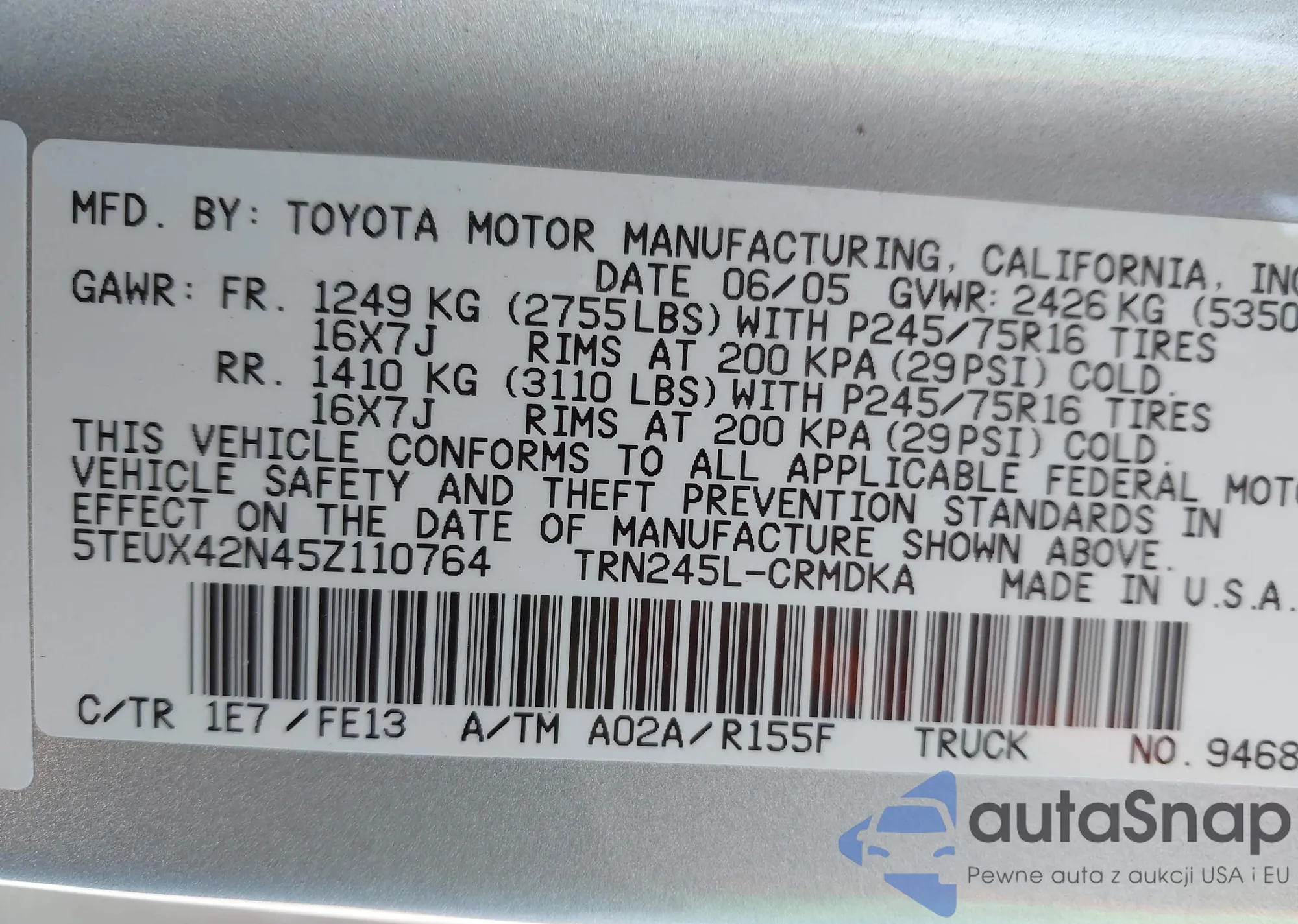 VIN: 5TEUX42N45Z110764