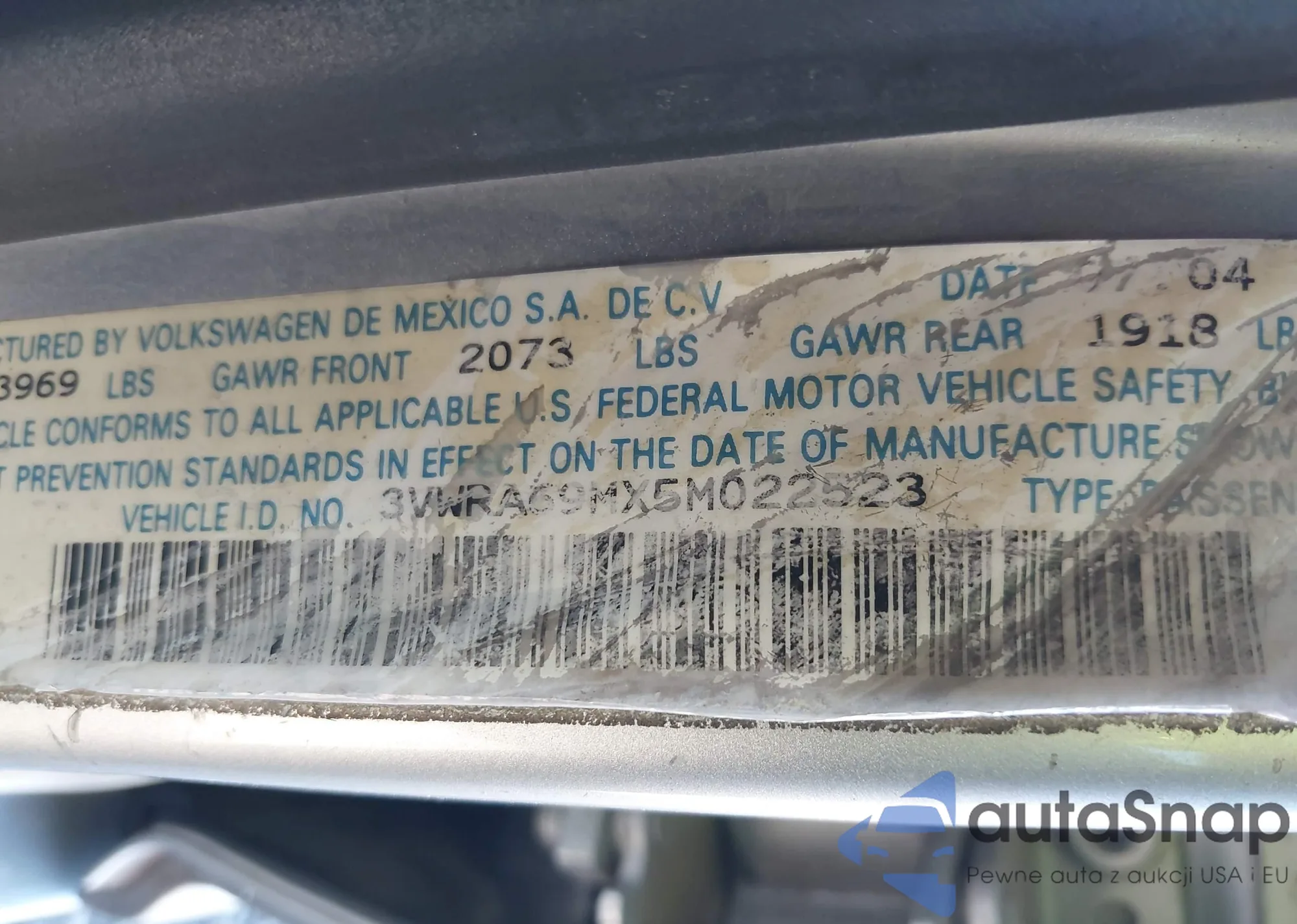 VIN: 3VWRA69MX5M022523