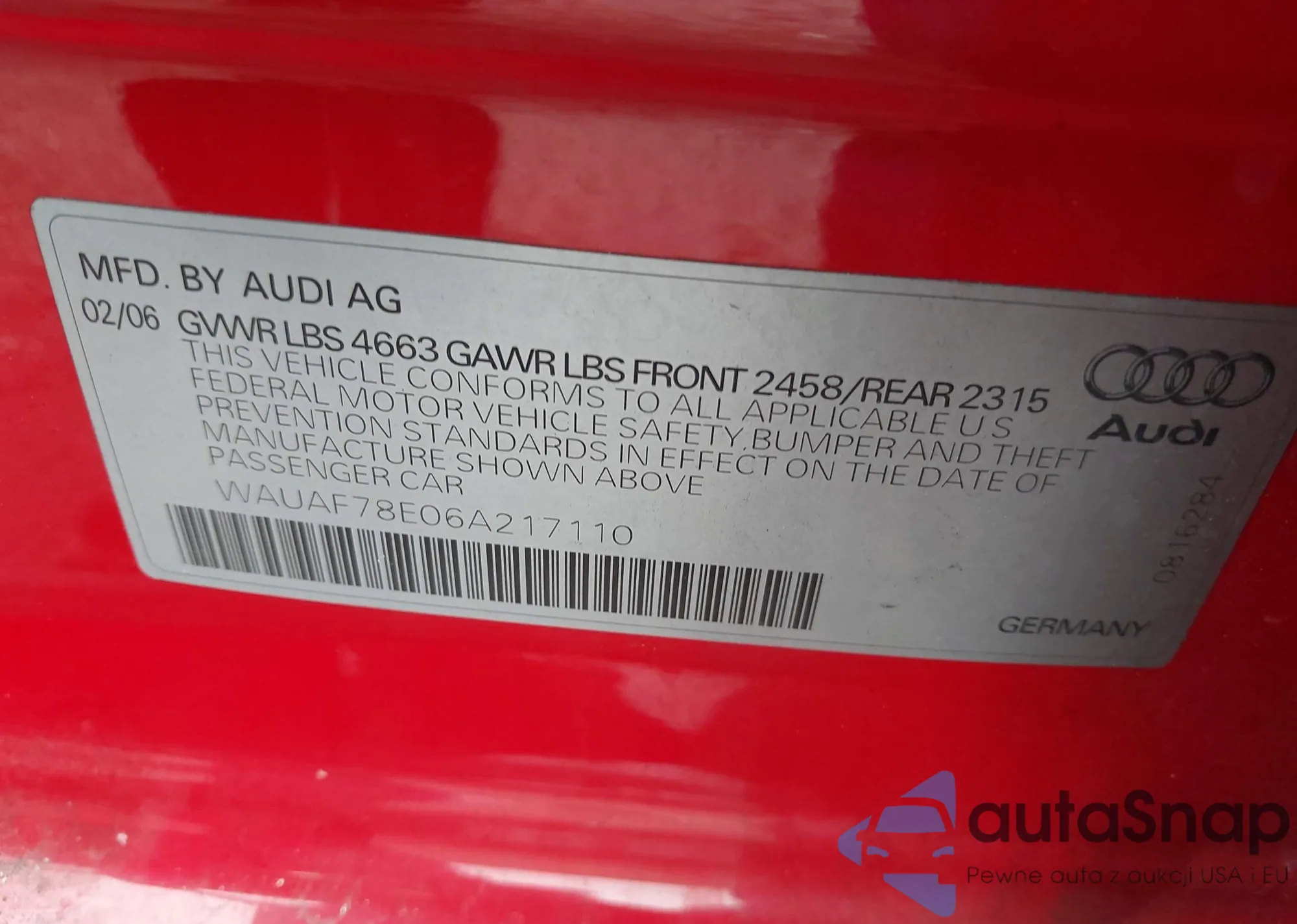 VIN: WAUAF78E06A217110