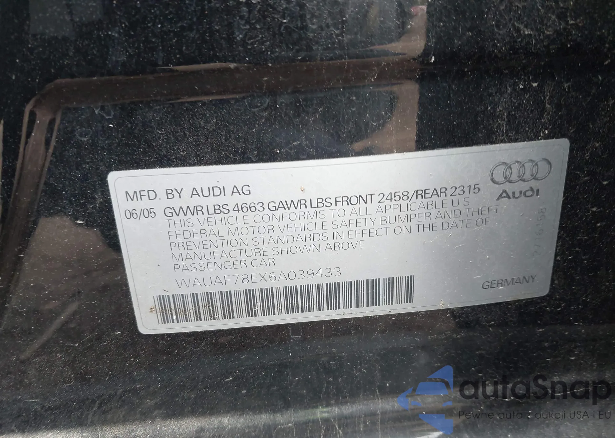 VIN: WAUAF78EX6A039433