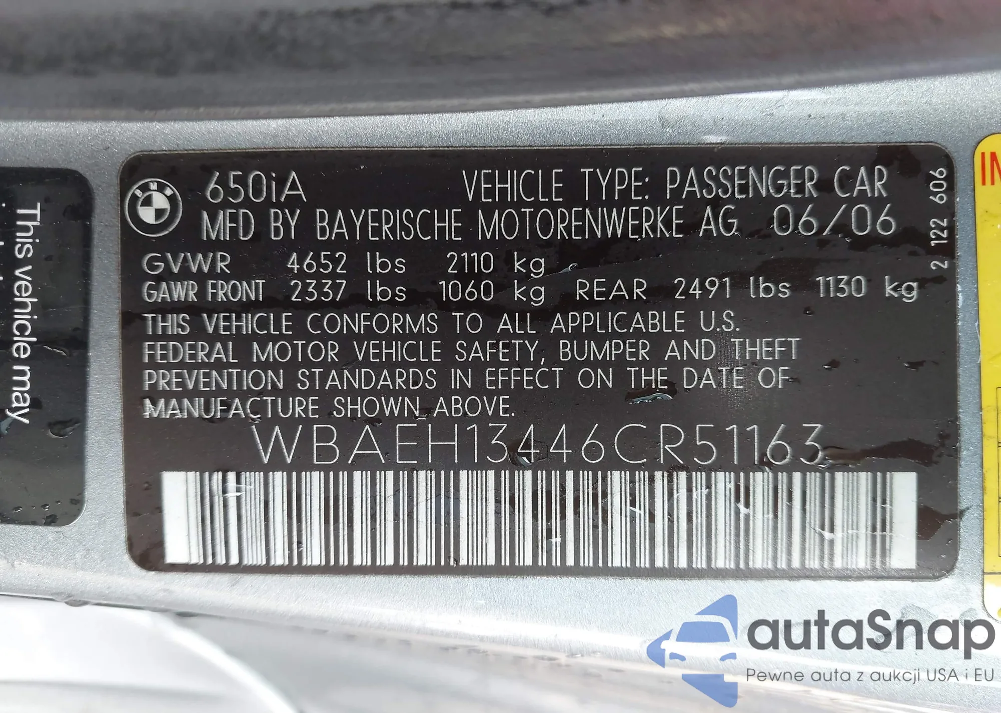 VIN: WBAEH13446CR51163