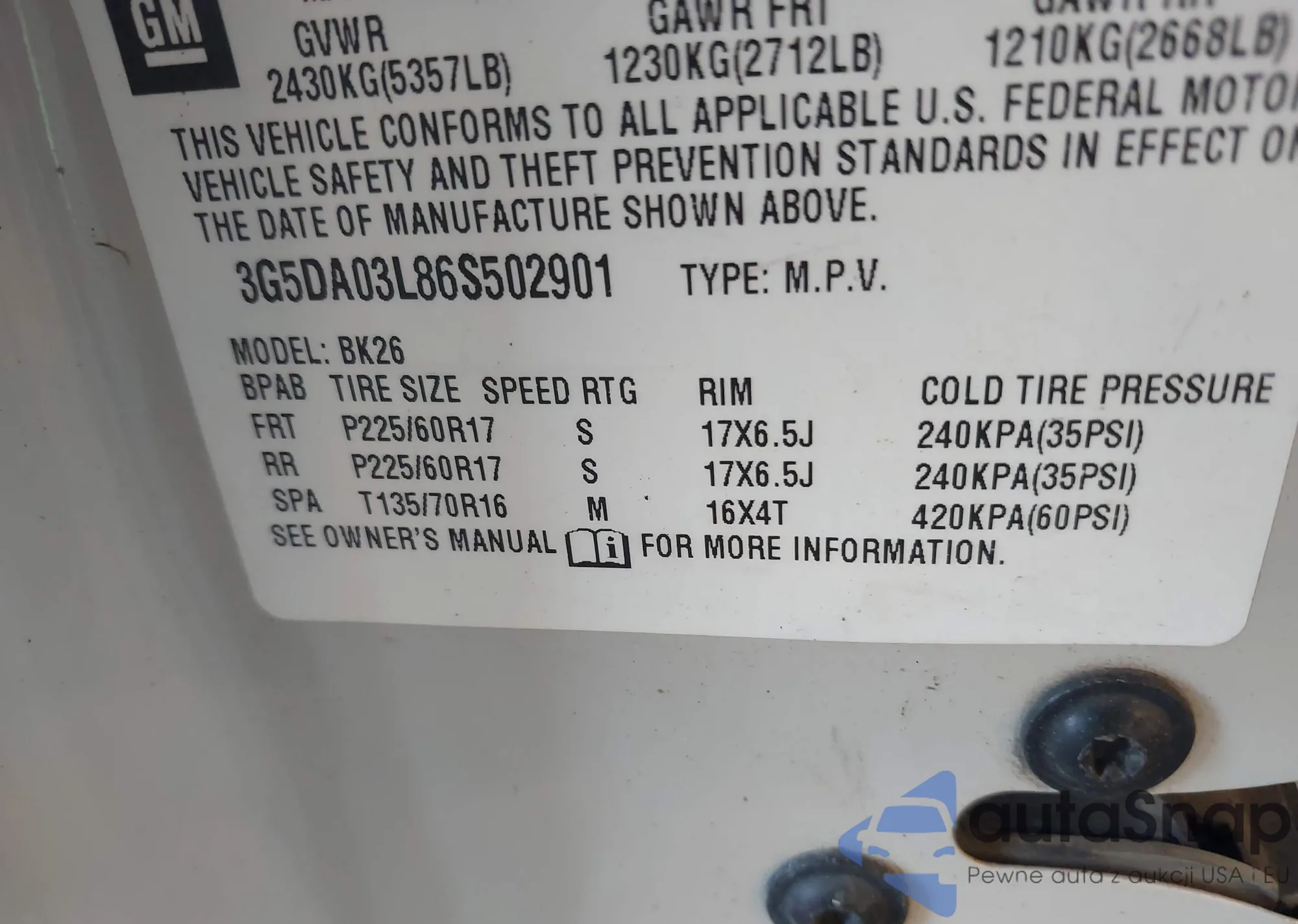 VIN: 3G5DA03L86S502901