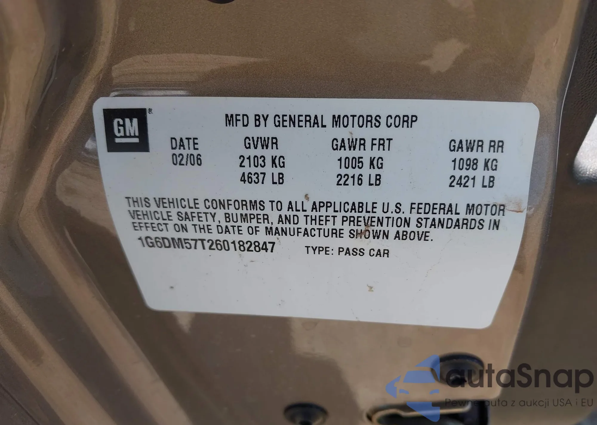 VIN: 1G6DM57T260182847