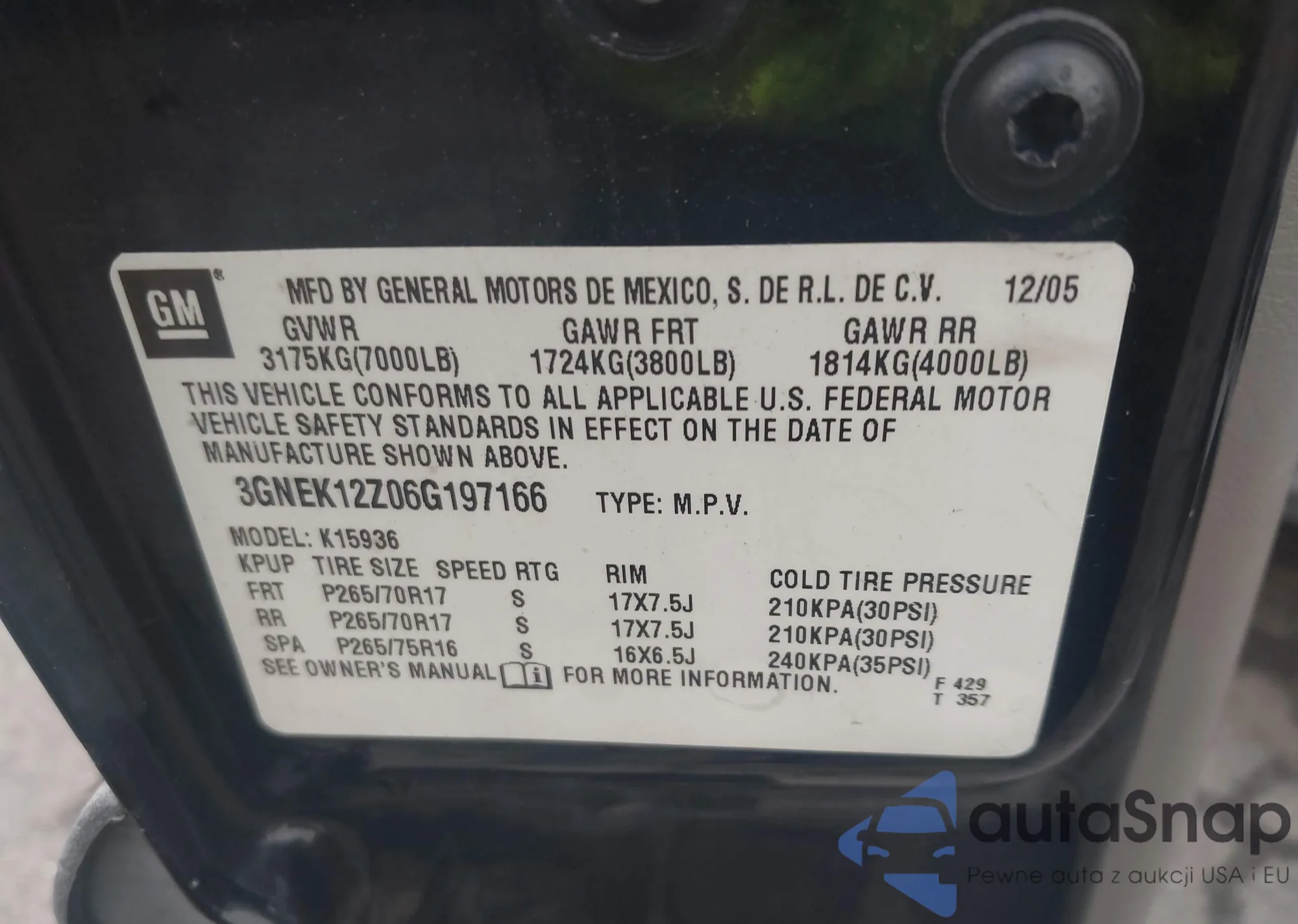 VIN: 3GNEK12Z06G197166