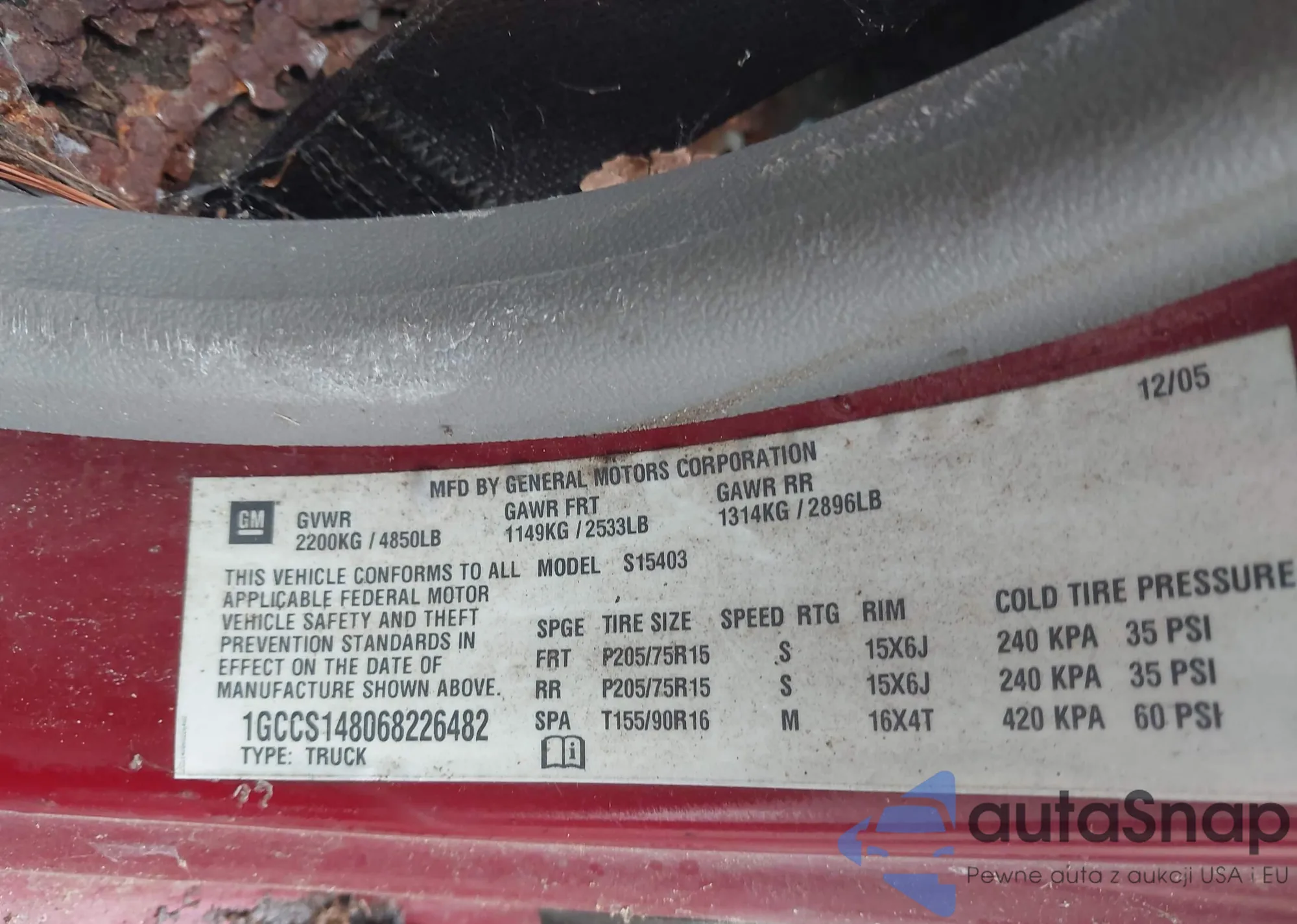 VIN: 1GCCS148068226482