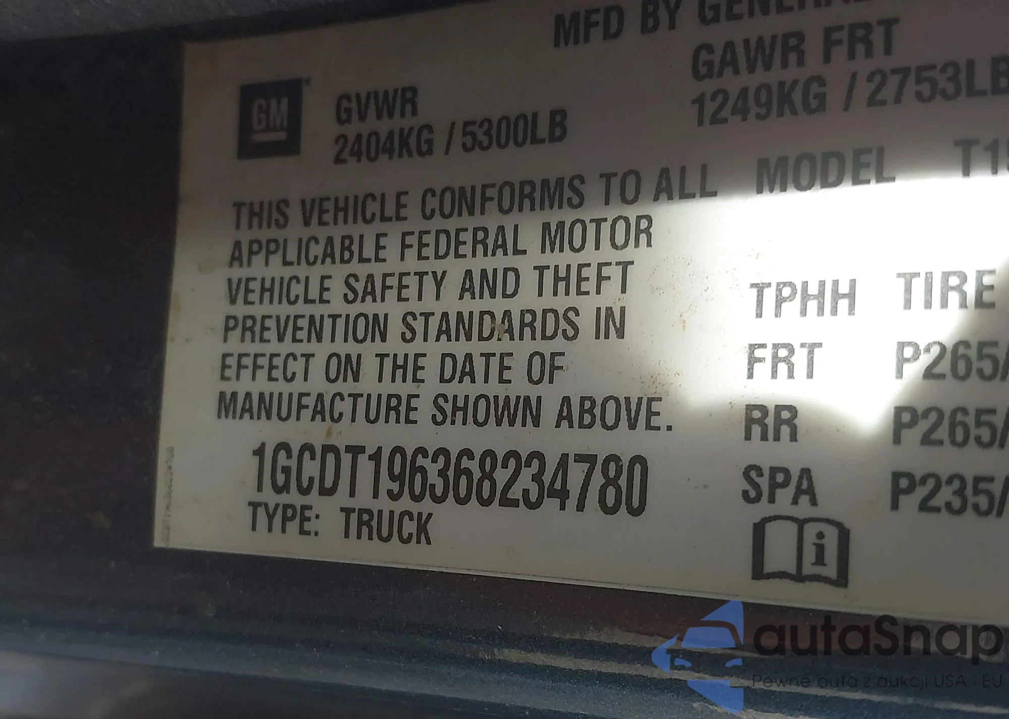 VIN: 1GCDT196368234780