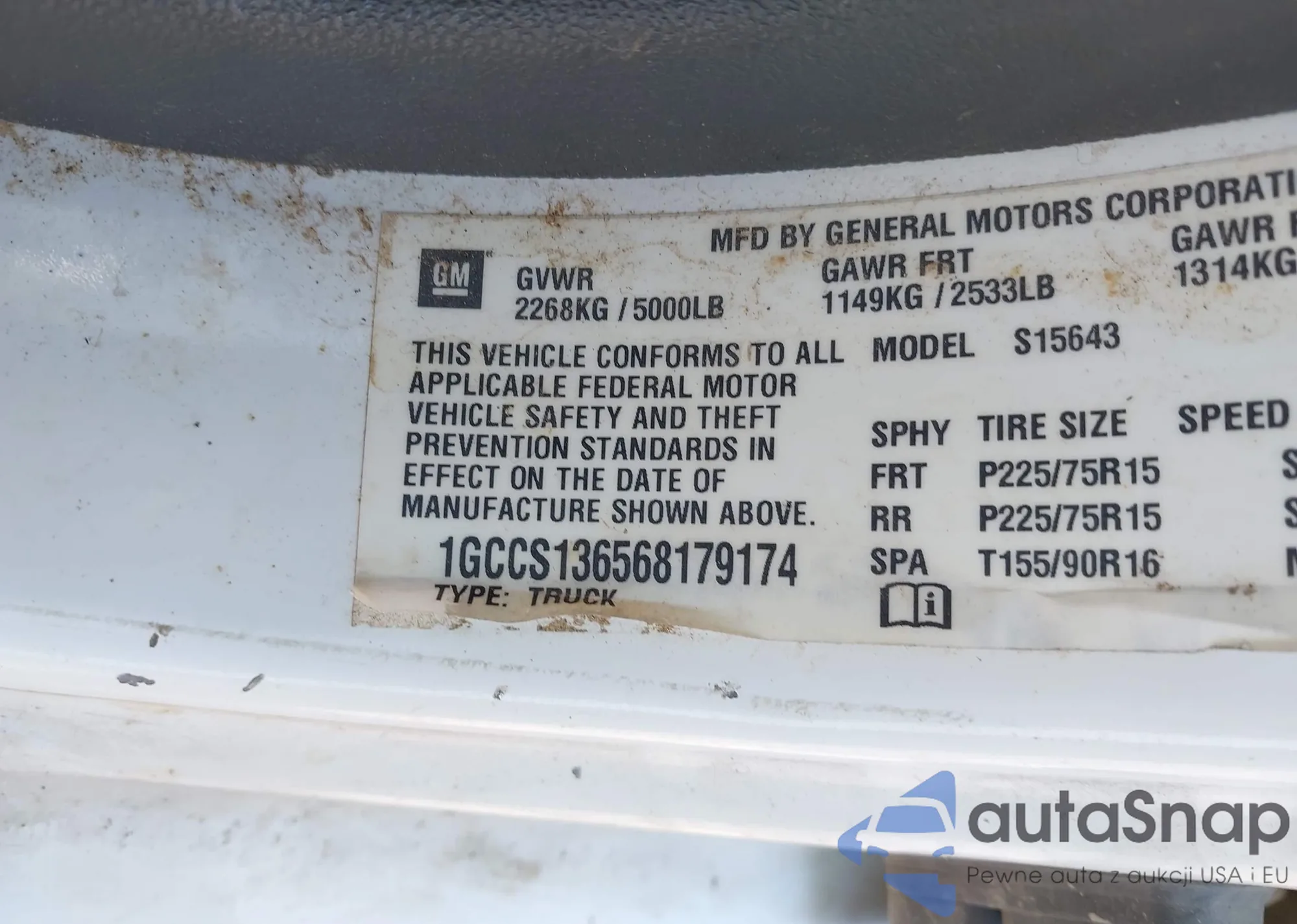 • VIN: 1GCCS136568179174